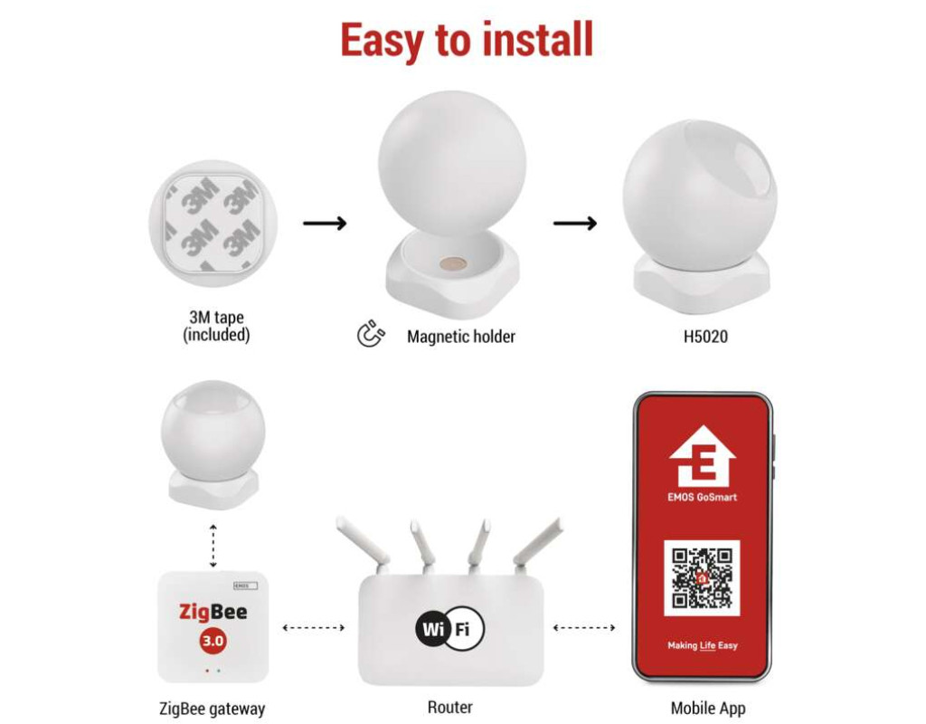 Розумне життя стало ще доступнішим Створіть власний розумний дім за допомогою смартпристроїв EMOS GoSmart та інших пристроїв, сумісних із TUYA. Підключайте окремі пристрої, налаштовуйте автоматизацію їхньої роботи та керуйте ними дистанційно через повністю локалізований і зручний мобільний застосунок. Датчик руху GoSmart Зробіть крок у безпечніше та енергоефективніше майбутнє з нашим компактним і універсальним інтелектуальним датчиком руху. Датчик фіксує рух під кутом 90 градусів на відстані до 8 м, а завдяки інфрачервоному випромінюванню не пропустить нічого навіть за поганого освітлення. При виявленні руху датчик надсилає сповіщення на мобільний пристрій через застосунок, доступний для Android та iOS. Датчик руху GoSmart також може визначати тривалість перебування, тобто як довго хтось знаходиться у контрольованій зоні. Таким чином, він частково може замінити датчик присутності. Проста установка та компактний розмір Наш датчик руху — ідеальний вибір для будь-якого дому чи офісу. Живлення здійснюється від батарейки CR123A з тривалим терміном служби, тому вам не доведеться часто її змінювати. Датчик компактний, а його енергоефективність забезпечує економне використання енергії. Монтаж здійснюється швидко та легко завдяки комплектним липкій стрічці 3M і внутрішньому магніту, що дозволяє розмістити датчик у будь-якому місці відповідно до ваших потреб. Підключіть датчик до шлюзу ZigBee та інтегруйте його з мобільним застосунком EMOS GoSmart (Android та iOS). Потім використовуйте застосунок для налаштування та управління датчиком. Створюйте автоматизації, керуйте голосовими помічниками, відстежуйте рухи та підключайте інші смартпристрої. Датчик руху GoSmart можна використовувати на власний розсуд: наприклад, розмістіть його біля сходів, і при виявленні руху він автоматично увімкне світлодіодне освітлення в зоні покриття. Або підключіть його до сирени, щоб непрохані гості відразу зрозуміли, що порушили ваш простір. |