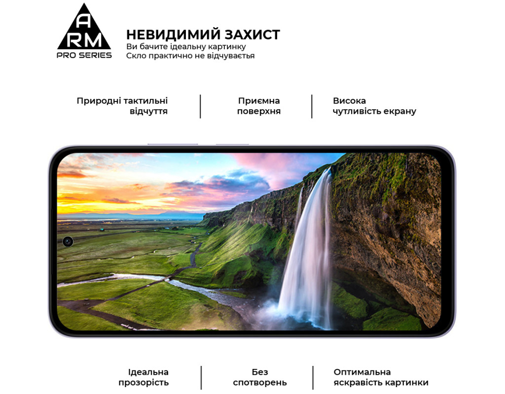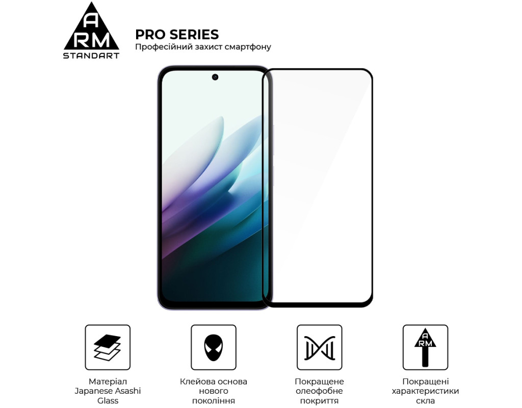 - Захисне скло Armorstandart Pro Series має оптимальні габарити та товщину на 0.3 мм. Передбачено вирізи під усі датчики, камери та роз'єми.