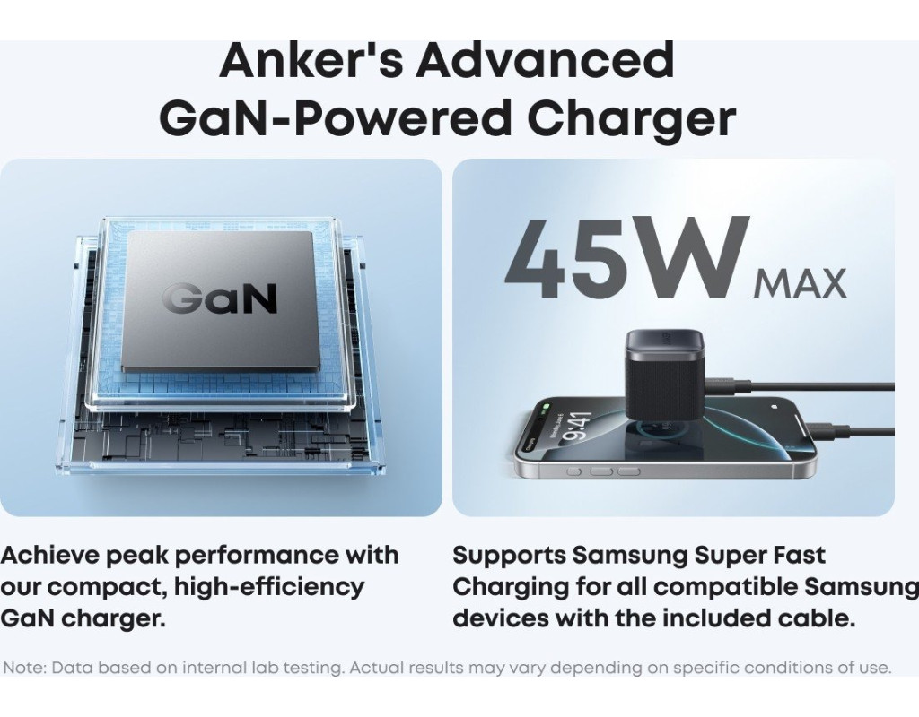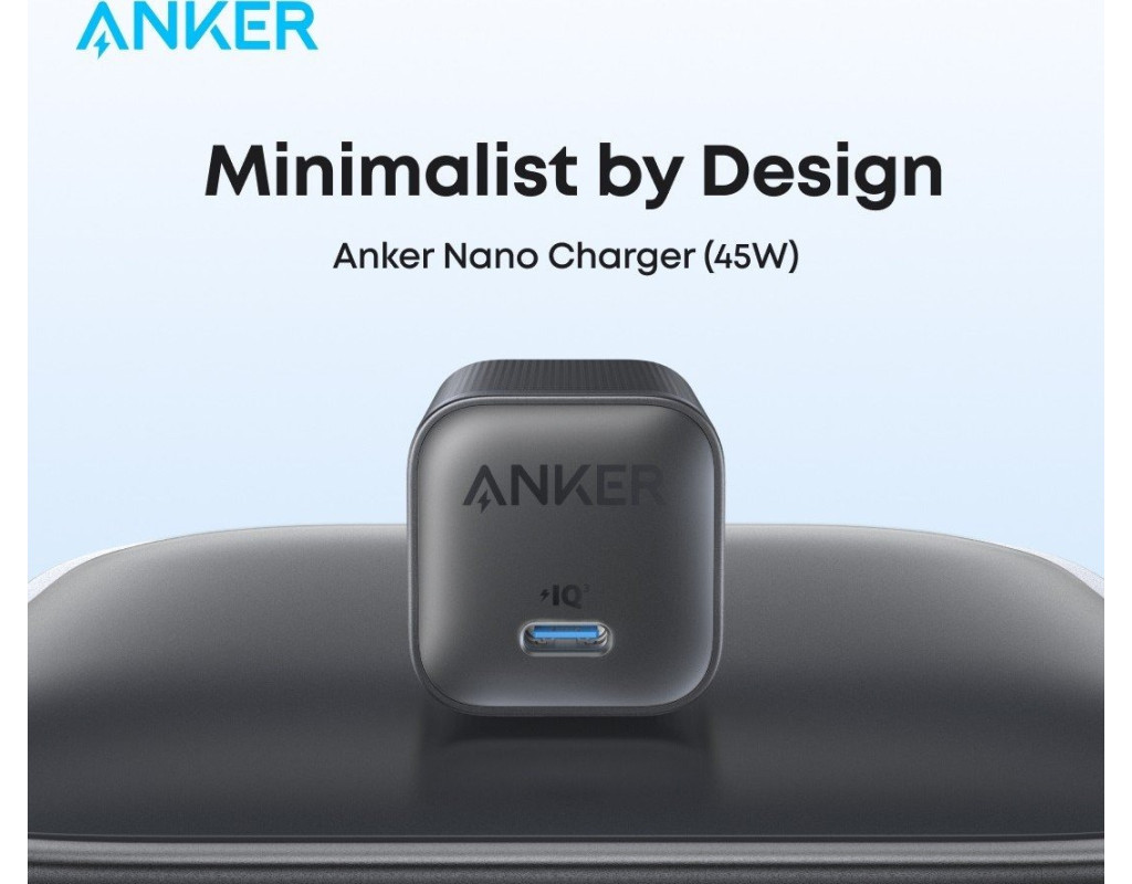 | Зарядний пристрій Anker Nano Charger 45W — це компактне рішення для швидкої зарядки сучасних гаджетів. Завдяки технології GaN пристрій має зменшені розміри, що робить його на 34% компактнішим за традиційні зарядні пристрої аналогічної потужності, зберігаючи при цьому високу ефективність.