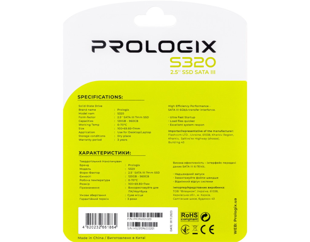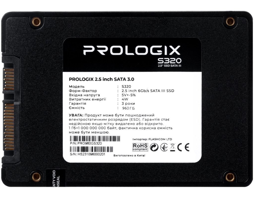 Лінійка твердотільних накопичувачів Prologix наразі включає в себе дві базові категорії - SATA і NVMe . Незалежно від особливостей кожного типу накопичувачів, SSD Prologix - це чудове співвідношення вартості й продуктивності. SSD накопичувач Prologix S320 - для тих, хто цінує продуктивність і розумну ціну. Привертає увагу не лише ефективністю, але й надійністю та зручністю використання. Prologix S320 дозволить вам зберігати всі ваші важливі файли і дані без зайвих зусиль. Будь-то ваші улюблені фотографії, відео або важливі документи, цей SSD завжди буде готовий до роботи. Інтерфейс SATA rev. 3.0 забезпечує швидкий і надійний зв'язок із вашим комп'ютером, підвищуючи продуктивність і реакцію системи. Ви не будете довго чекати на завантаження операційної системи або відкриття важливих програм. Його компактний форм-фактор 2,5 дюйма робить встановлення SSD швидким і простим в будь-якій системі. Ви з легкістю знайдете місце для нього в вашому ноутбуці чи комп'ютері. Флеш-пам'ять NAND TLC об'єднує високу продуктивність з надійністю. Ваші дані завжди залишаються безпечними і доступними. З швидкістю читання до 520 МБ/с та швидкістю запису до 450 МБ/с, ви відчуєте ефективність в кожному аспекті використання вашого комп'ютера. А велика швидкість випадкового читання блоками 4KB (до 350K IOPS) та запису (до 600K IOPS) робить цей SSD ідеальним для завдань з обробки великих обсягів даних та грифічного дизайну. Додайте до всього цього ресурс запису (TBW) 120 TB та середній час безвідмовної роботи (MTBF) 1,0 мільйон годин, і ви отримаєте надійного партнера на багато років вперед. Зробіть правильний вибір для вашого комп'ютера, виберіть Prologix S320. Насолоджуйтесь швидкістю, надійністю і доступною ціною - все це в одному накопичувачі. |