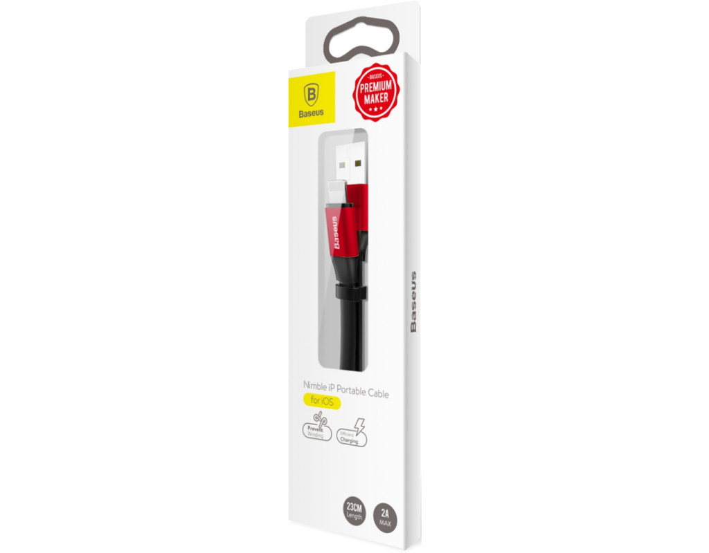 Тип - кабель, Тип конектора 1 - USB 2.0 (AM), Тип конектора 2 - Lightning, довжина - 0.23 м, Номінальний струм - 2 А, покриття: ПВХ, Колір - червоно-чорний