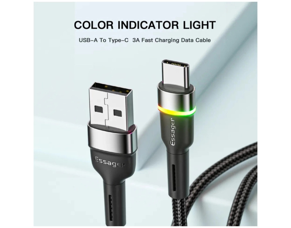 | Кабель Essager USB-A x USB-C для заряджання та передачі даних, за допомогою швидкої зарядки, за технологією Qualcomm Quick Charge, для пристроїв - Xiaomi, Meizu, Samsung, LG, HTC, Huawei та інших. Переваги кабелю Essager:
