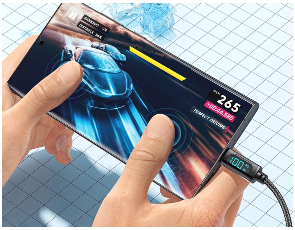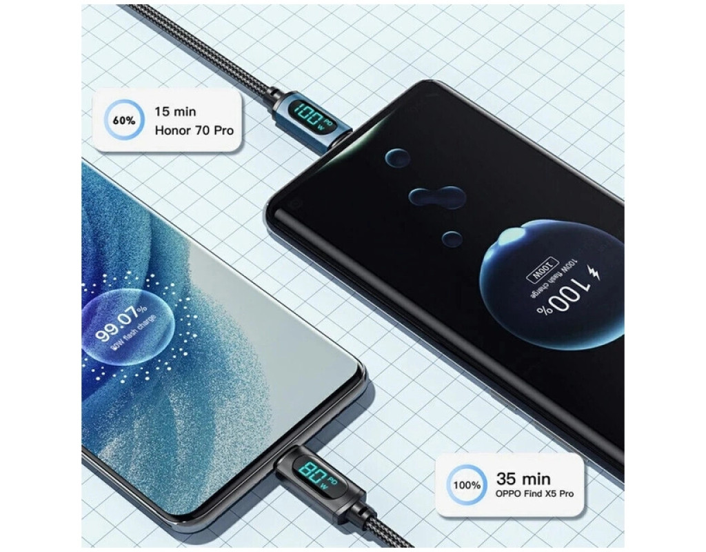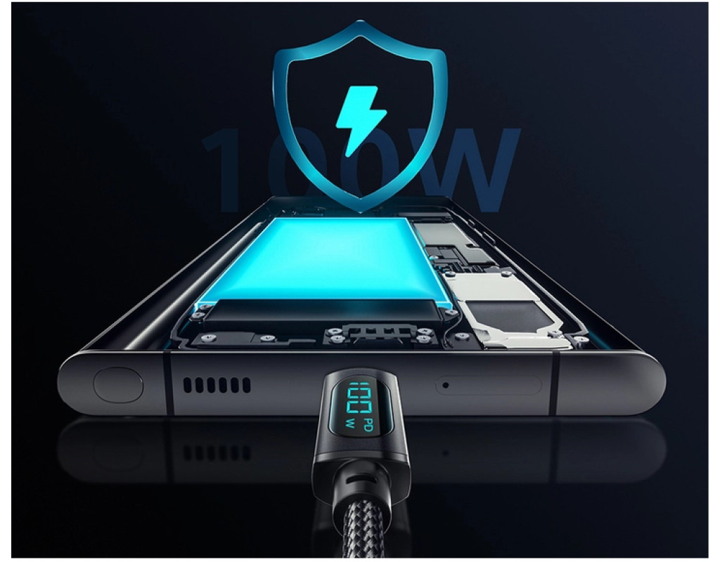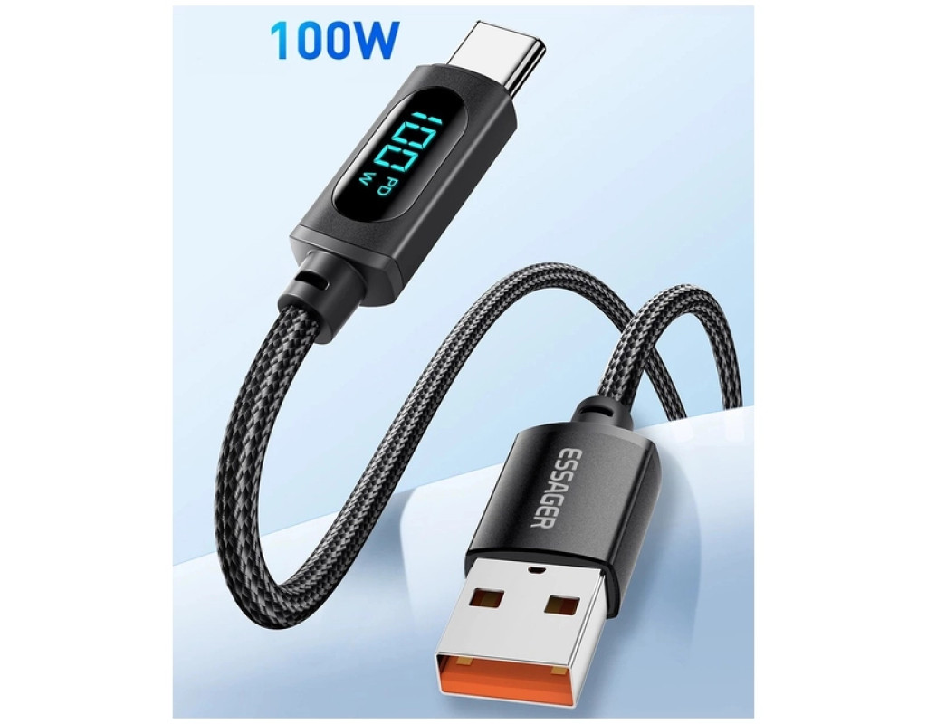 Дизайн Плетений кабель ESSAGER LED Digital Display USB-A-Type-C виконаний з якісних матеріалів. По всій його поверхні можна виявити нейлонове захисне обплетення. Міцний матеріал не тріскається та не рветься. Сам кабель виконаний із термопластичного еластомеру, а конектори — з алюмінієвого сплаву з роз'ємами USB-A to Type-C. Екран цифрового дисплея показує поточну вихідну потужність під час заряджання пристрою в режимі реального часу. Він не тільки дозволяє вам бачити робочий стан системи заряджання, але також дозволяє вимірювати ефективність зарядного пристрою та акумуляторів. Безпечний заряд батареї Кабель ESSAGERмає вбудований захист, який усуває перегрів та перевантаження. Наповнюйте енергією ваш пристрій швидко та безпечно. Високоякісний кабель ESSAGER LED Digital Display USB-A для Type-C Cable ідеально сумісний з будь-яким пристроєм з роз'ємом Type-C. Характеристики: