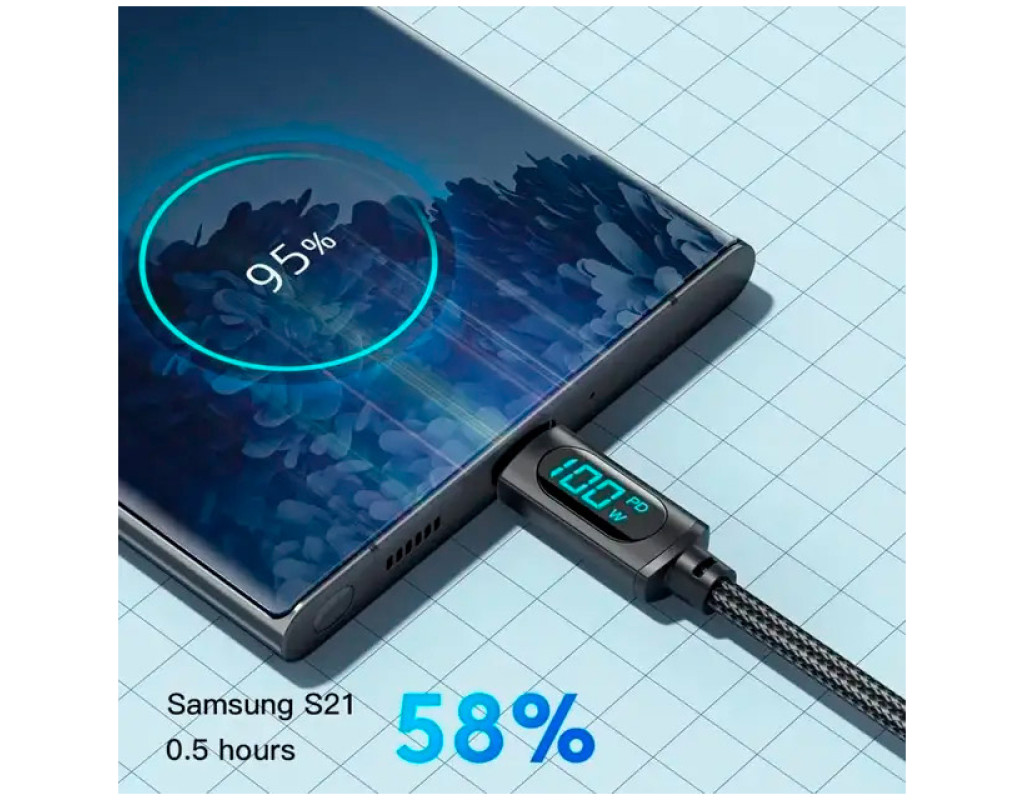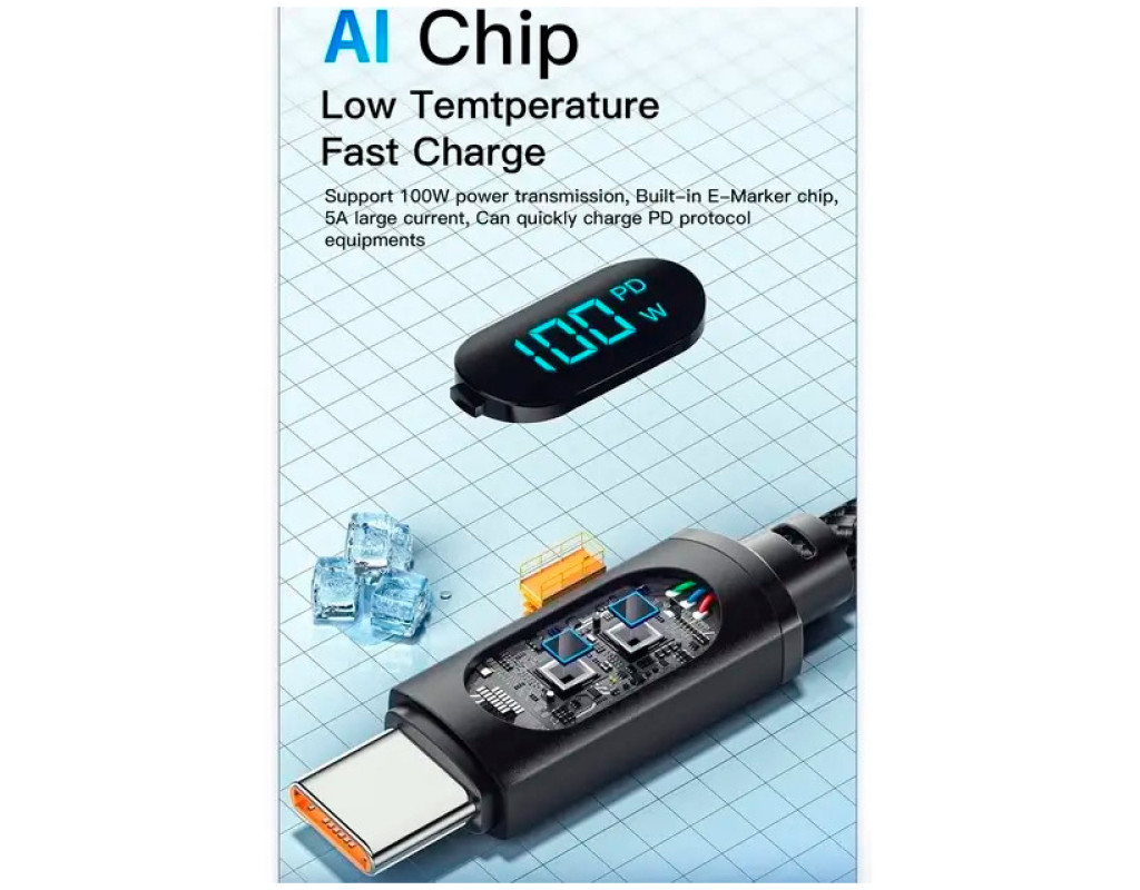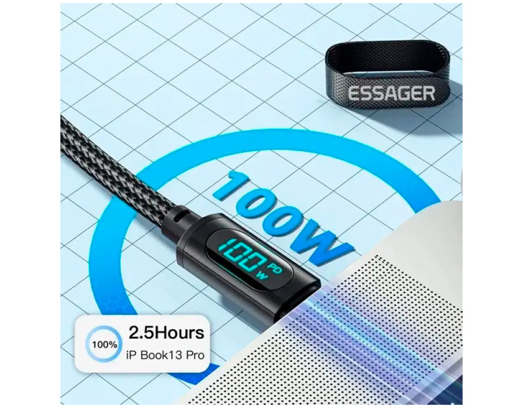 Характеристики кабелю Essager Led Digital Display Type-C to Type-C 100W:
