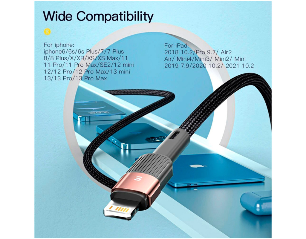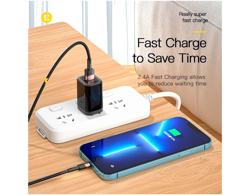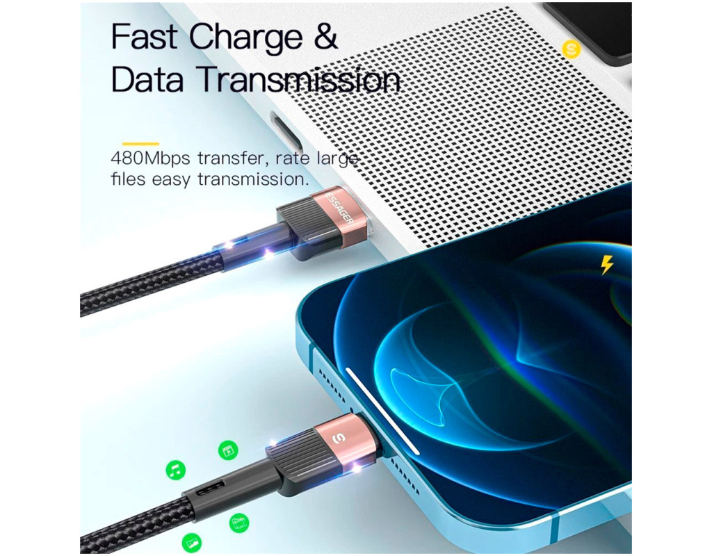 | Зарядний кабель Essager Star 6A Lightning USB дозволяє заряджати та передавати дані між сумісними пристроями, які мають роз'єми – USB-A to Lightning. До того ж у конструкцію впровадили стандарт швидкого заряджання, завдяки чому можна за короткий час відновити заряд акумулятора телефону або планшета. Переваги кабелю Essager: