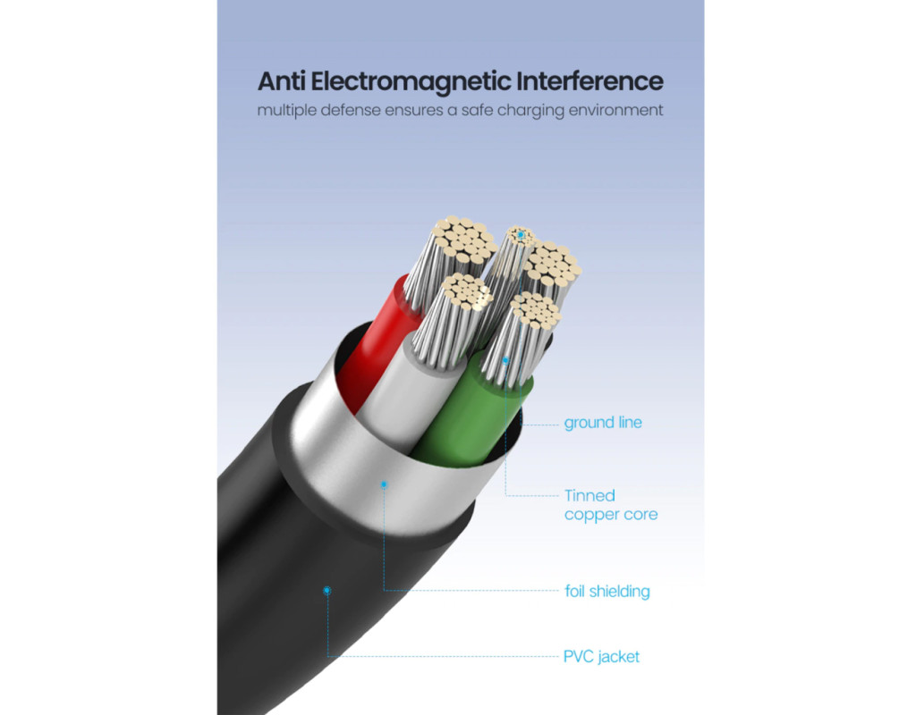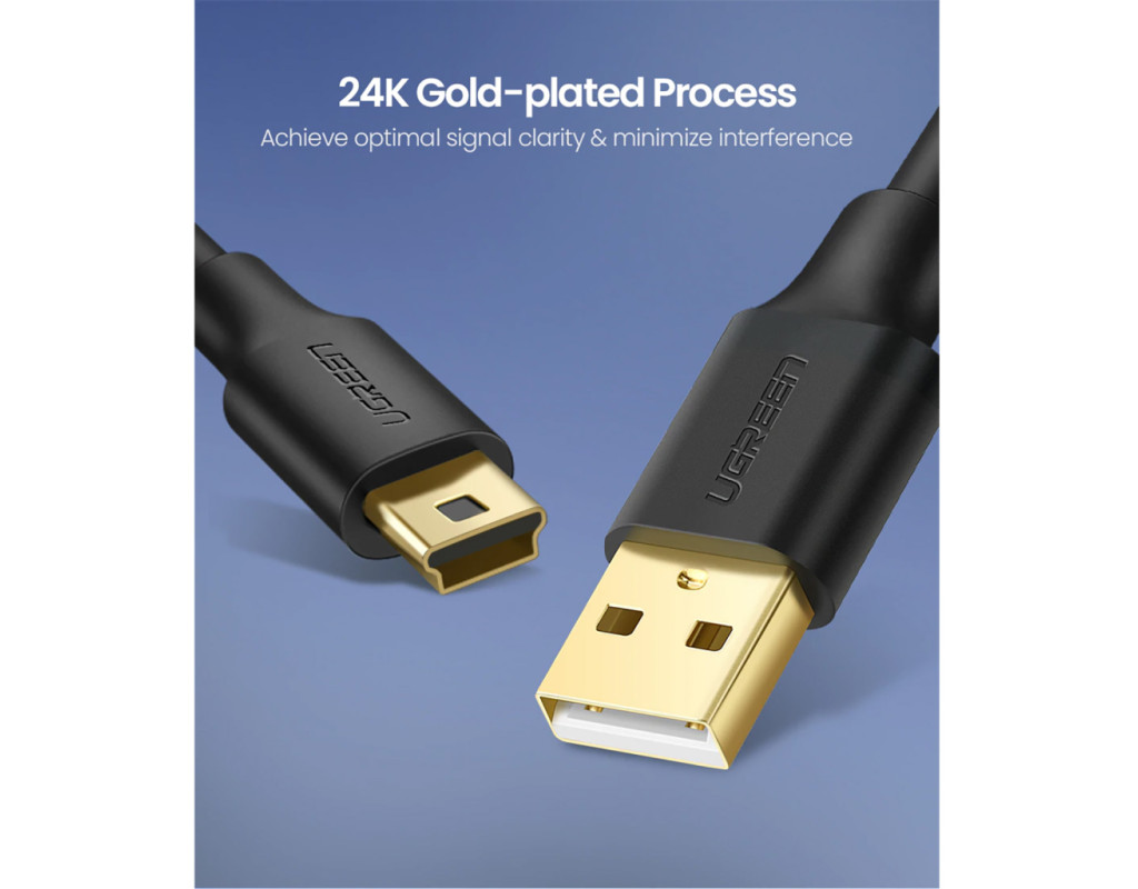 Корозійностійкі оголені мідні провідники, позолочений роз'єм і екранування з фольги та обплетення забезпечують максимальну провідність кабелю mini USB-USB і мінімізують втрати даних.