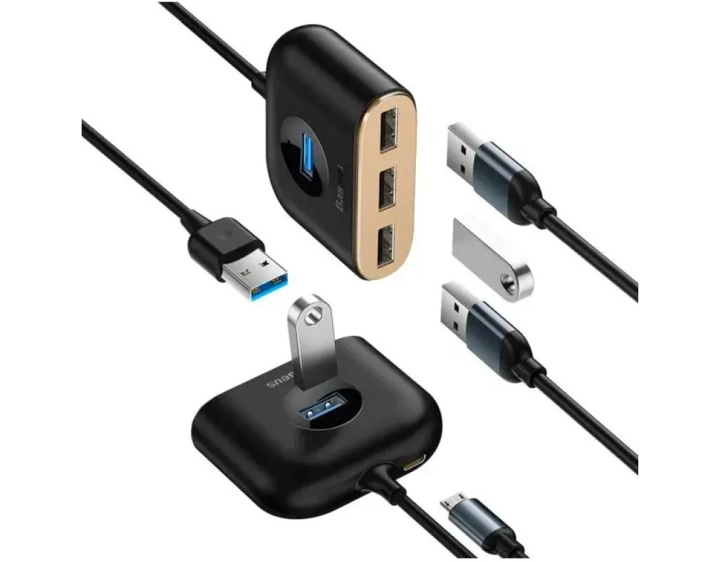 USB Hub Baseus Square Round 4 in 1 — це зручний та функціональний хаб, який підключається до ПК або ноутбука за допомогою інтерфейсу USB 3.0. Модель дозволяє значно розширити функціональність пристрою, додавши до його арсеналу 4 USB-порти, три з яких – USB 2.0, які дозволять під'єднати різні периферійні пристрої, флешки тощо. Один роз'єм USB 3.0 розрахований для підключення зовнішніх накопичувачів та флешок, оскільки забезпечують швидкість передачі даних до 5 Гбіт/с. Три порти USB 2.0 дадуть можливість задіяти додаткові миші, клавіатури, геймпади та інші USB-пристрої, в яких не важлива швидкість передачі даних і ще один маленький бонус, є microUSB. |