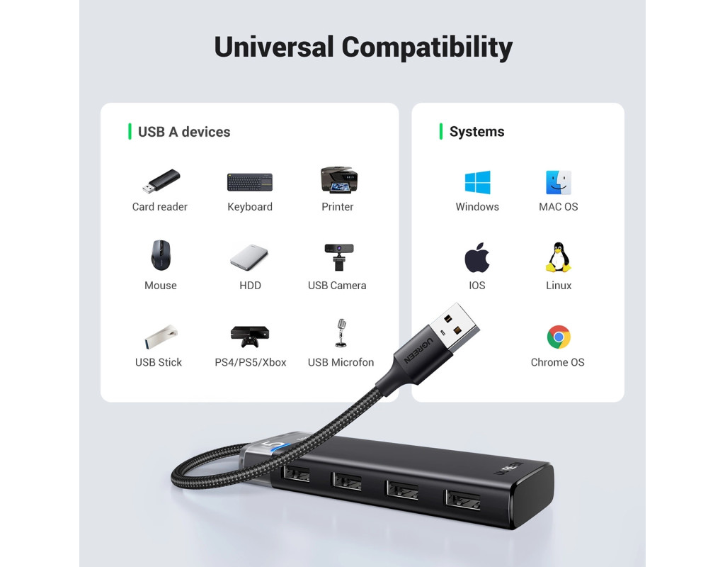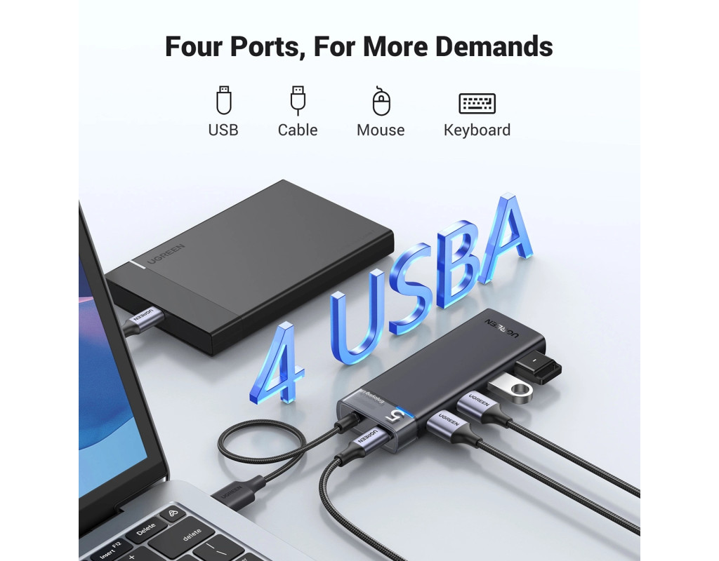 Хаб USB 3.0 -> 4хUSB-A 3.2 Gen1 10Gbps Black CM219 Ugreen