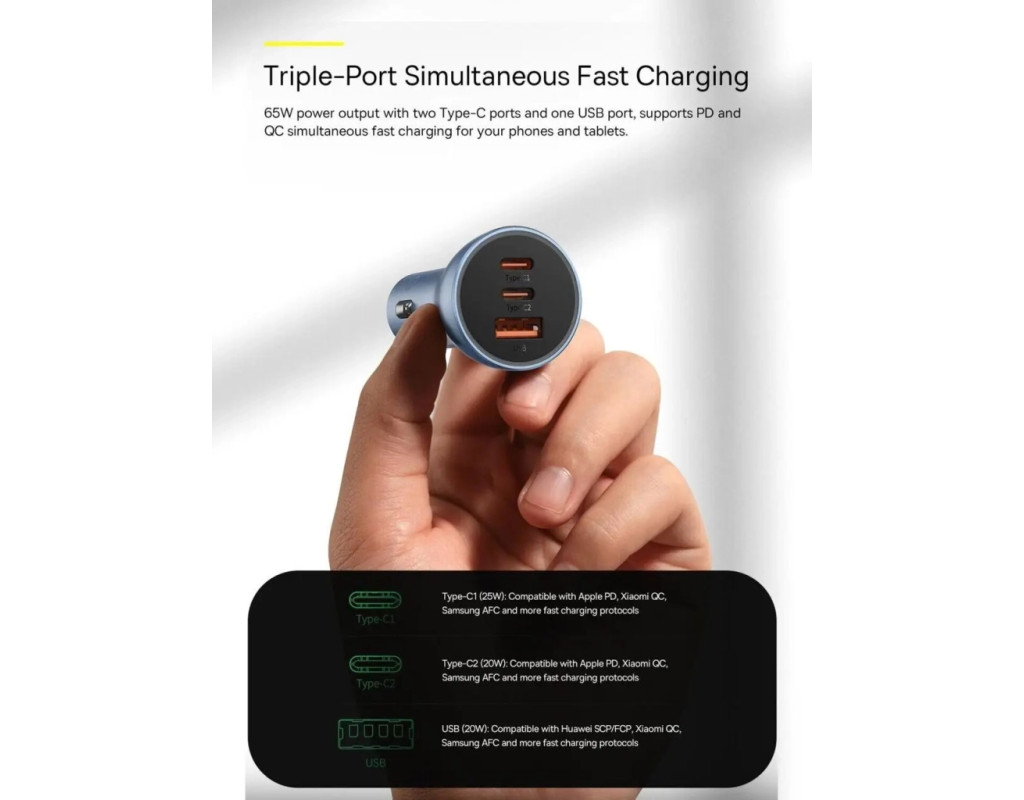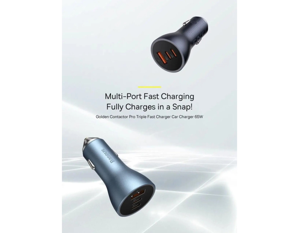 | Зарядний пристрій Baseus Golden Contactor Pro темно-сірого кольору - це ідеальний вибір для автомобілістів, які цінують якість і ефективність. Оснащений трьома вихідними портами - двома USB-C і одним USB-A - цей універсальний адаптер живлення забезпечує максимальну вихідну потужність 65 Вт, дозволяючи швидко заряджати відразу декілька пристроїв. Завдяки підтримці протоколів швидкого заряджання, таких як Quick Charge 4.0+, Quick Charge 3.0 і Power Delivery 3.0, кожен ваш гаджет буде забезпечений необхідним рівнем енергії в найкоротший термін. Завдяки технології BPSII, зарядний пристрій автоматично виявляє підключене обладнання і оптимізує струм для безпечної і надійної роботи. Міцні матеріали, з яких виготовлений пристрій, стійкі до високих температур і зовнішніх ушкоджень, що гарантує тривалу експлуатацію навіть у складних дорожніх умовах. Крім функціональності, зарядний пристрій Baseus має стильний дизайн і компактні розміри, завдяки яким він легко знаходить місце в прикурювачі автомобіля. Інтегроване світлодіодне підсвічування робить його використання зручним навіть у темний час доби, а посилена протиковзка конструкція забезпечує стійкість на нерівних дорогах. Цей зарядний пристрій стане невід'ємною частиною вашого автомобільного обладнання, що дозволить вам завжди залишатися на зв'язку, наповнюючи енергією ваші смартфони, планшети, навушники та інші пристрої одночасно. Насолоджуйтеся безмежними можливостями Baseus Golden Contactor Pro в будь-якій поїздці! |