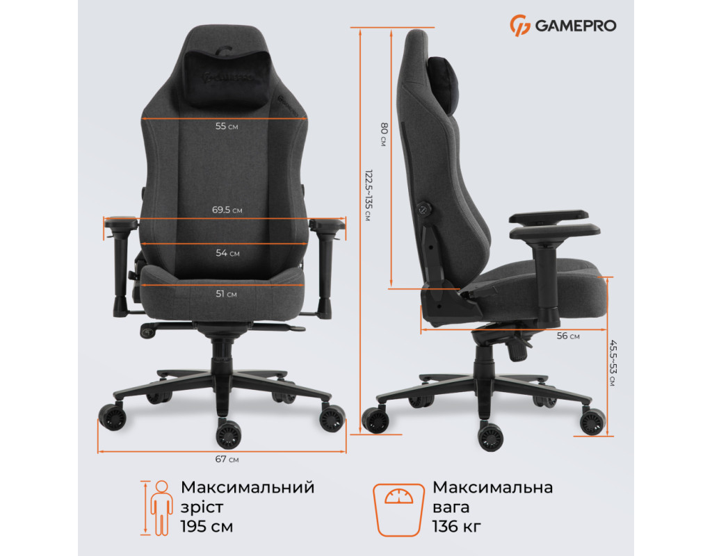 | Пориньте в світ безкомпромісного комфорту та функціональності з ігровим кріслом GamePro GC775DG Fabric Dark Gray (GC775DG). Це майстерне поєднання ергономіки, високоякісних матеріалів та передових технологій розроблене спеціально для активних геймерів та тих, хто проводить багато часу за комп'ютером, прагнучи досягти максимального комфорту й продуктивності. Рама крісла виготовлена з легкого, але водночас вкрай міцного алюмінію, що підвищує надійність конструкції та забезпечує витримування навантаження до 136 кг. Це ідеально підходить для користувачів з максимальною висотою 195 см, дозволяючи відчувати свободу рухів. Оббивка з високоякісного текстилю надає кріслу стильного та стриманого вигляду в елегантному темно-сірому кольорі. Наповнювач з піни холодного формування забезпечує м'якість і комфорт при тривалих сесіях, підтримуючи тіло в оптимальному положенні та зменшуючи втомлюваність. Особливістю є подушка з ефектом пам’яті для підтримки голови та шиї, яка кріпиться за допомогою магнітів і ідеально адаптується до форми вашого тіла. Інтегрована система підтримки попереку дозволяє додатково регулювати положення по висоті та глибині, забезпечуючи збереження природніх вигинів хребта. 4D підлокітники — це новий рівень персоналізації. Вони налаштовуються за усіма можливими напрямками: висота, вперед/назад, вліво/вправо та всередину/назовні, що гарантує максимальний комфорт і задоволення індивідуальних потреб користувача. Технологічний єкгазліфт 4 класу забезпечує плавне та надійне регулювання висоти сидіння від 45,5 до 53 см, тоді як механізм "мультиблок" дозволяє налаштовувати нахил спинки до 135° та фіксувати крісло в найбільш комфортному положенні для роботи або відпочинку. Окрему увагу варто приділити міцній основі крісла, що складається з п’яти ніжок із колесами, які підвищують стійкість та маневреність. Прогумовані колеса діаметром 65 мм дозволяють легко та безшумно пересуватися по будь-якій поверхні, не залишаючи подряпин чи слідів. GamePro GC775DG — це ідеальний вибір для тих, хто цінує якість, інновації та бездоганний стиль. Незалежно від того, чи ви геймер, програміст чи просто любите комфорт, це крісло стане вашим незамінним союзником у повсякденних справах. Отримайте неймовірний досвід комфорту та продуктивності з GamePro GC775DG! |