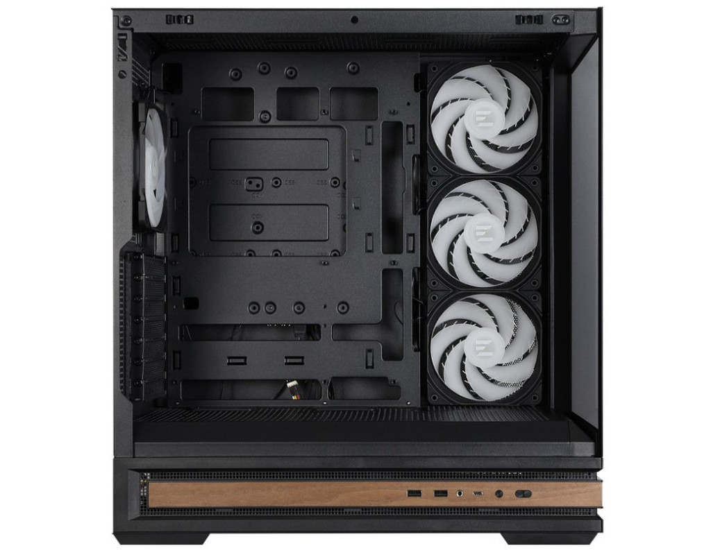 | Корпус для ПК Zalman P40NAMUBLACK — це досконалий вибір для тих, хто прагне створити сучасну мультимедійну або ігрову станцію з першокласним дизайном та широкими можливостями кастомізації. Основною особливістю цього корпусу є його вишуканий та естетичний панорамний дизайн. Скляні передня та бічна панелі виготовлені із загартованого скла, що дозволяє насолоджуватися внутрішньою архітектурою вашої системи, підкреслюючи її візуальні елементи та ефективне підсвічування. Для максимального охолодження Zalman P40NAMUBLACK оснащений чотирма 120 мм ARGB вентиляторами з реверсними функціями. Вентилятори забезпечують активне обдування та оптимальний теплообмін, зокрема, революційне рішення реверсних вентиляторів на бічній панелі дозволяє забезпечити приплив холодного повітря зовні, тоді як вентилятор на задній панелі ефективно витягає нагріте повітря. Це гарантує стабільну роботу компонентів навіть під значним навантаженням. Корпус підтримує встановлення материнських плат Mini-ITX, Micro-ATX, ATX, що забезпечує більшу гнучкість у виборі системи. Здатність розміщувати до двох 3.5'' і трьох 2.5'' накопичувачів дає змогу ефективно організувати систему зберігання даних. Блок живлення місцем розташовується в нижній частині корпусу, що забезпечує кращий розподіл ваги та поліпшену циркуляцію повітря. Спеціальна вставка з натурального дерева, інтегрована у конструкцію, додає стильний акцент, який відповідає сучасним трендам интер'єрного дизайну. Завдяки детально продуманій конструкції та високій якості складання корпус не тільки підкреслює естетику, але й забезпечує безпеку компонентів, завдяки вмонтованим пиловим фільтрам та продуманій системі вентиляції. Додаткові переваги Zalman P40NAMUBLACK — це можливість встановлення відеокарт до 420 мм довжиною, що є оптимальним вибором для новітніх потужних ігрових відеоадаптерів. Максимальна висота процесорного кулера до 165 мм дозволяє інтегрувати кращі системи повітряного охолодження. Також передбачено підтримку рідинного охолодження, з місцями для встановлення радіаторів різних форматів, включно з до 360 мм на боковій панелі та 280 мм на верхній частині. Вбудовані роз'єми USB 3.1 Type-C та USB 3.0 в поєднанні з аудіороз'ємами забезпечують простоту підключення пристроїв та швидку передачу даних. Це робить Zalman P40NAMUBLACK не просто корпусом, а завершеним рішенням для високопродуктивного ПК, який стане ключовим елементом будь-якої комп'ютерної конфігурації. Загальна вага корпусу — 8.7 кг, що робить його достатньо стійким, але водночас дозволяє легко маніпулювати при складанні системи. Обирайте Zalman P40NAMUBLACK, якщо шукаєте корпус, який поєднує високу якість, стильний дизайн та функціональність. Це не лише оболонка для вашого ПК, а справжній витвір мистецтва, який стане центром вашого технологічного арсеналу. |
