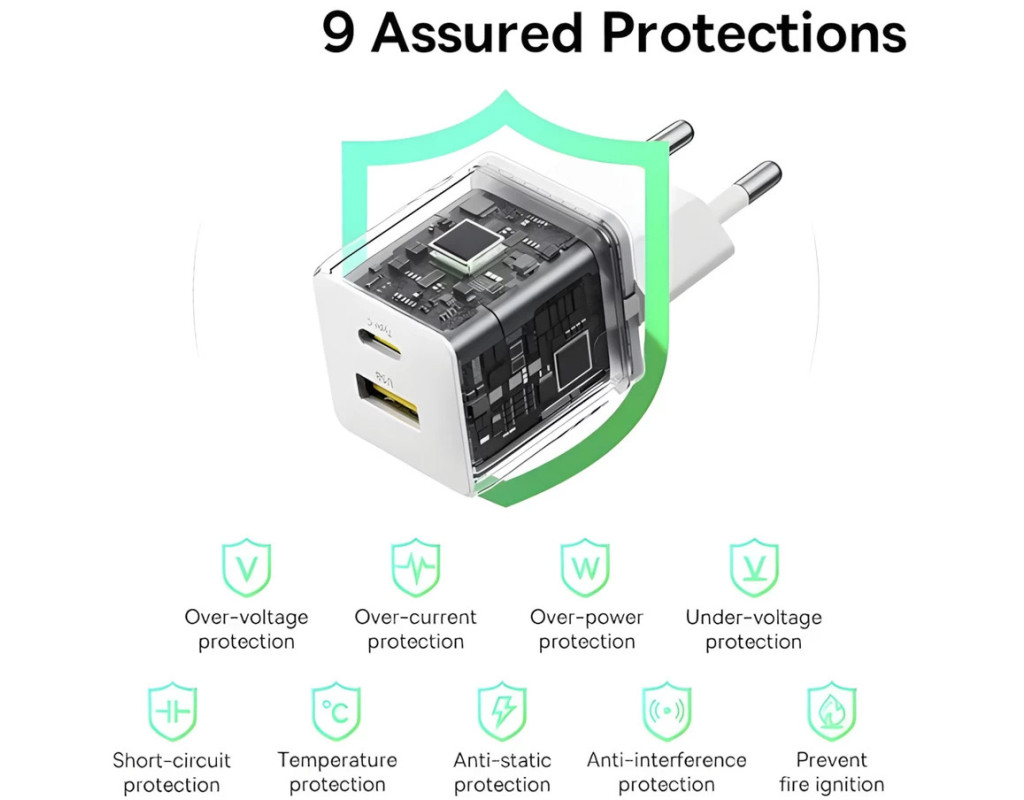 | Зарядний пристрій Baseus 1xUSB-C 20W + 1xUSB у білому кольорі з кабелем USB-C to USB-C 60W довжиною 1 м (P10111608213-01) вирізняється своєю потужністю та зручністю для сучасного користувача. Цей універсальний адаптер здатний одночасно заряджати декілька пристроїв завдяки наявності двох портів - USB Type-C та USB. Він забезпечує ефективну зарядку для смартфонів, планшетів, смарт-годинників, фітнес-браслетів та інших гаджетів, роблячи вашу техніку завжди готовою до використання. Особливістю даного зарядного пристрою є підтримка швидкої зарядки, завдяки технологіям Power Delivery 3.0 та Quick Charge 4.0. Це дозволяє скоротити час, потрібний для зарядки, і гарантує високоефективне живлення ваших приладів. Максимальна вихідна потужність досягає 20 Вт, тоді як максимальний струм складає 2.5 А, що сприяє швидкому відновленню енергії ваших пристроїв. Основна перевага Baseus – це компактність та надійність. Пристрій обладнаний розумним чипом, який запобігає перегріву, перенапрузі та короткому замиканню, забезпечуючи безпеку під час використання. Також у комплекті є високоякісний кабель Type-C to Type-C 60W, довжина якого 1 м, що сприяє зручності та швидкості передачі енергії навіть на відстані. Зарядний пристрій Baseus – це бездоганне рішення для швидкої та надійної зарядки вашої техніки, даруючи вам спокій щодо безпеки та продуктивності кожної зарядки. Вибір на користь Baseus – це вибір на користь якості та ефективності. |