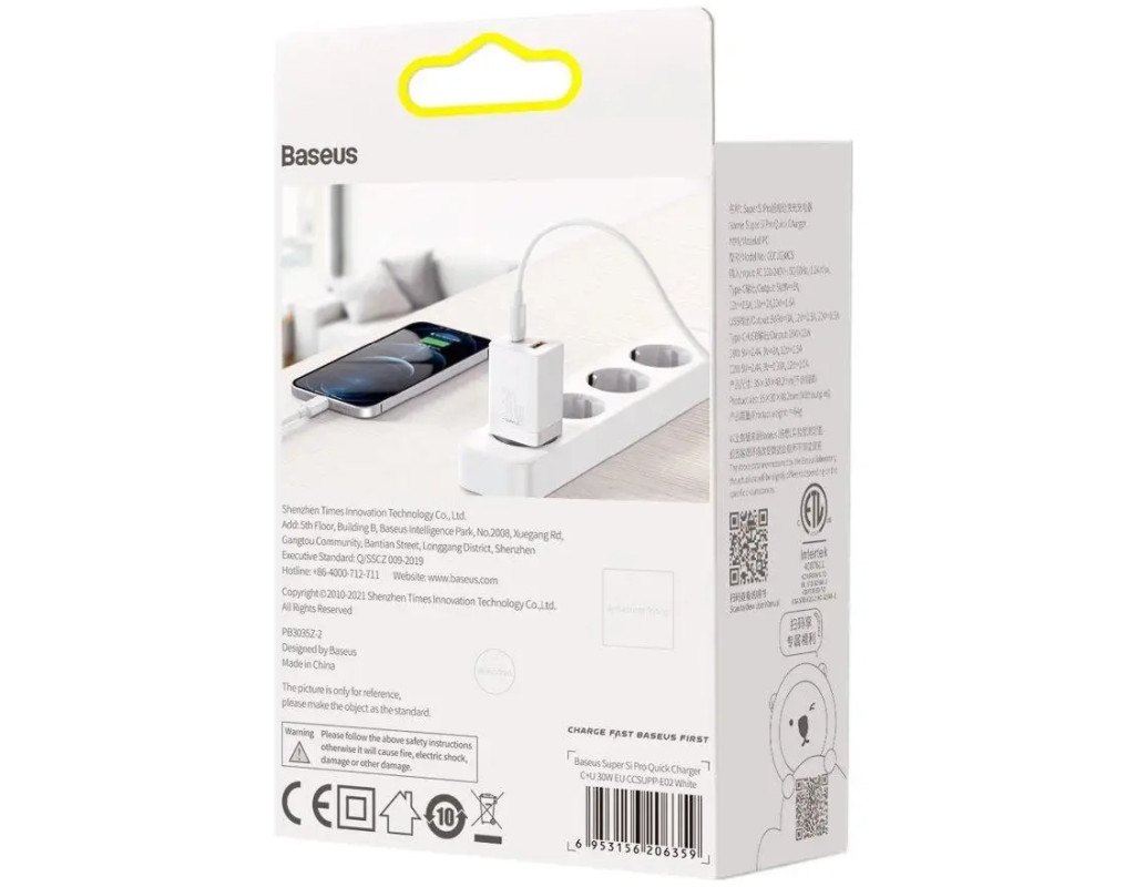 | Зарядний пристрій Baseus Super Si Pro Quick Charger (CCSUPP-E02) є ідеальним вибором для всіх, хто цінує високу якість та ефективність у сучасному світі технологій. Завдяки поєднанню двох вихідних портів - USB Type-C і USB, цей адаптер здатен надавати живлення одночасно двом пристроям, без втрати швидкості заряджання. Оснащений технологіями швидкої зарядки Power Delivery 3.0 та Quick Charge 3.0, цей зарядний пристрій забезпечує максимальну вихідну потужність до 30 Вт, що дозволяє швидко заряджати такі пристрої, як смартфони, планшети, смарт-годинники та інші гаджети. Наприклад, iPhone 11 може набути до 50% заряду лише за 30 хвилин. Особливість цього пристрою полягає в технології Super Si, що використовує кремнієвий полімер для покращеної теплопровідності та ефективності. Це забезпечує надійну роботу навіть за високих температур, підтримуючи стабільну робочу температуру корпусу. Інтелектуальний чип захищає від перевантажень, перегріву та коротких замикань, забезпечуючи безпеку вашому обладнанню. Матеріали високої якості гарантують бездоганну якість пристрою, а його компактність (вага всього 67 г) дозволяє легко переносити зарядний пристрій будь-де. Сумісність з iOS, Android та іншими платформами робить його універсальним, надійним супутником для вашого активного життя. |