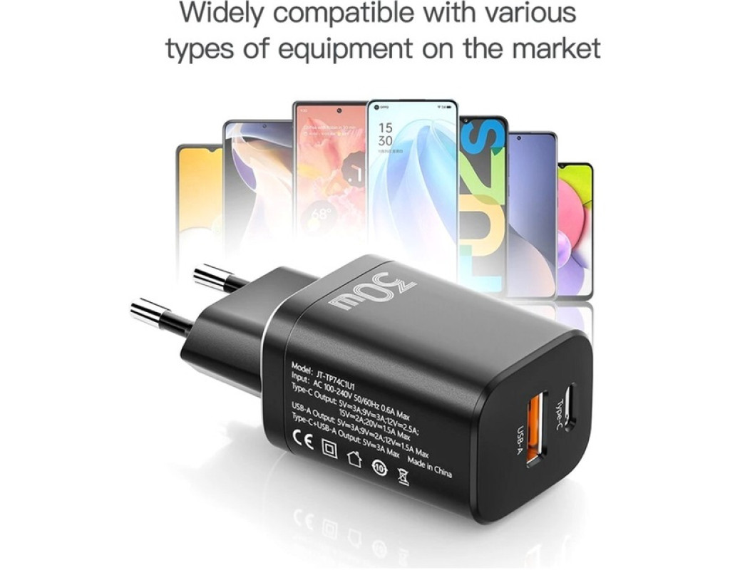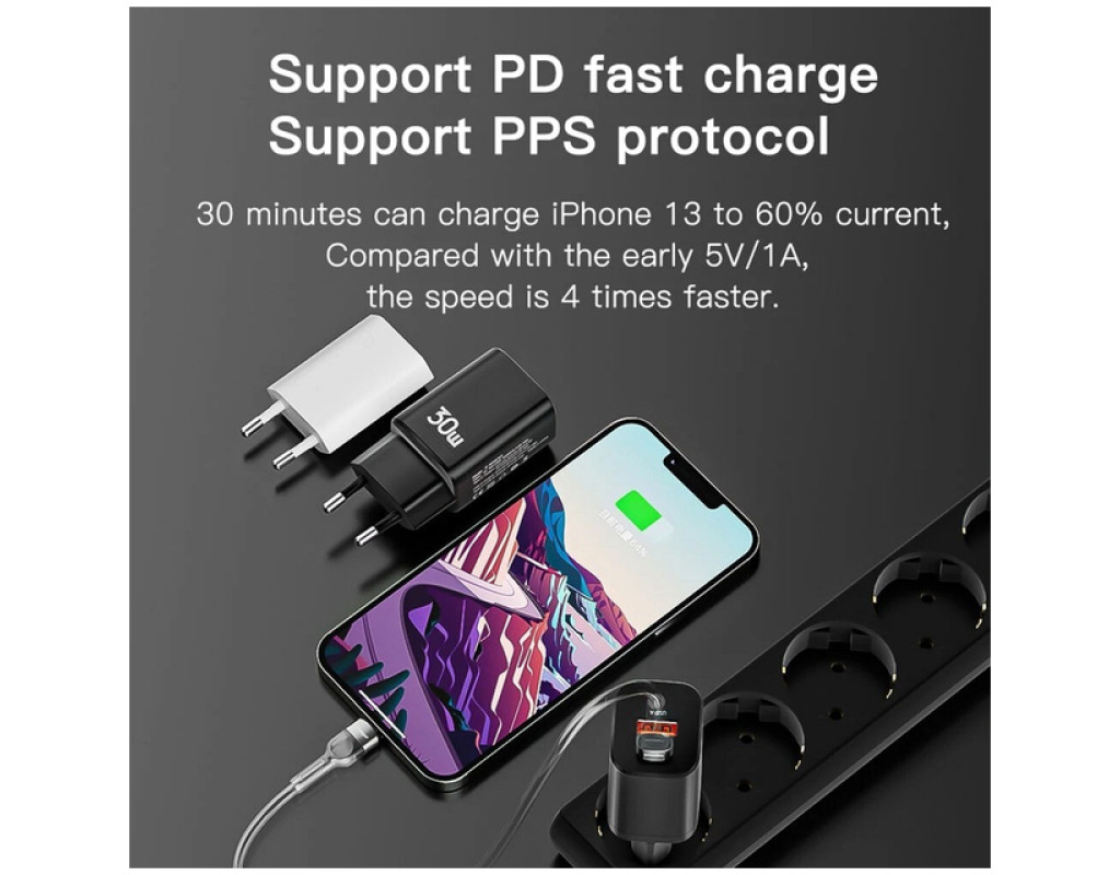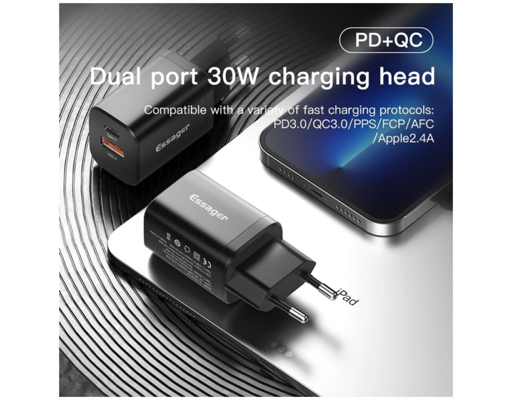 | Зарядний пристрій Essager 1xUSB + 1xUSB-C PD30W black (ECTPQS-ZTB01) — це професійний вибір для тих, хто цінує швидкість і зручність. Завдяки потужності 30 Вт, цей адаптер дозволяє заряджати одразу два пристрої, включаючи смартфони, планшети, TWS навушники, фітнес-браслети, геймпади та навіть екшн-камери, що робить його ідеальним для будь-яких ситуацій. Інноваційний дизайн забезпечує поєднання портів USB-C і USB, що відкриває можливості для швидкої зарядки з підтримкою стандартів Power Delivery, Quick Charge 3.0 та Fast Charging. Використання порту USB-C з максимальною потужністю 30 Вт дозволяє, наприклад, зарядити iPhone 13 до 60% за всього лише півгодини, що в чотири рази швидше за звичайні зарядні пристрої. Захист ваших пристроїв понад усе: Essager оснащений кількома ланцюгами захисту, які контролюють температуру, напругу та струм. Це забезпечує безпечну експлуатацію, зберігаючи вашу техніку в ідеальному стані. Універсальність — ось, що робить цей зарядний пристрій таким цінним. Essager підходить для пристроїв різних брендів, тому незалежно від ґаджету, ви завжди будете впевнені в якості та ефективності зарядки. З компактними габаритами 84.5 х 29 х 35 мм, цей зарядний пристрій легко бере з собою в подорожі, що робить його ідеальним компаньйоном для активних людей. Оберіть Essager для швидкої, безпечної та ефективної зарядки ваших улюблених гаджетів. |