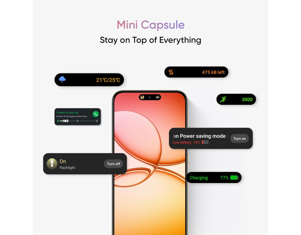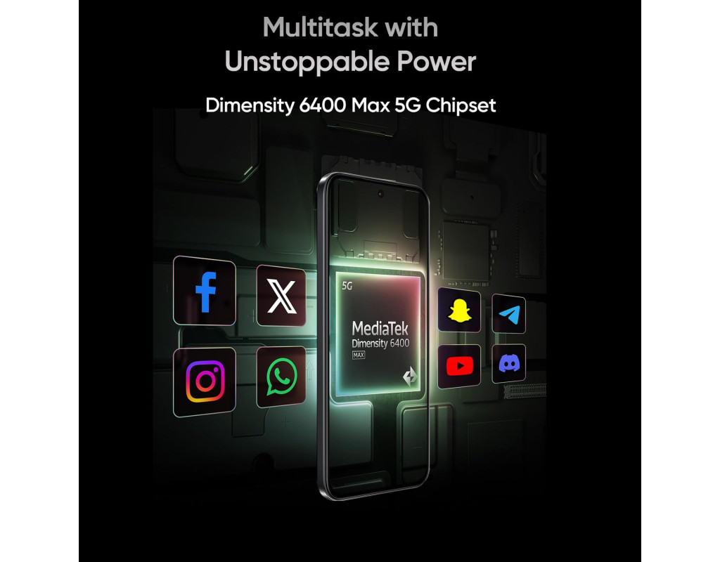 | Realme 15T — це сучасний смартфон, який поєднує потужність і стиль у компактному корпусі, ідеально підходячи для щоденного використання. Цей пристрій вирізняється великою місткістю акумулятора та захистом від води, що робить його надійним супутником для активного способу життя.