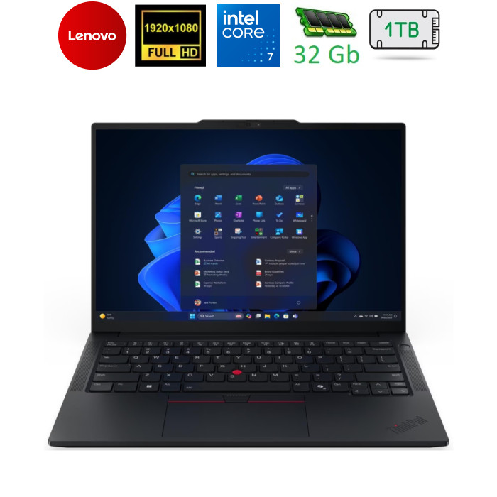| ThinkPad E14 Gen 7 — потужний компаньйон для роботи ThinkPad E14 Gen 7 Black (21SYS0AP00) — це сучасний ноутбук, який відкриває нові можливості для бізнес-користувачів. Цей пристрій розроблений для забезпечення продуктивності, безпеки та зручності під час роботи як в офісі, так і на ходу. Завдяки компактним габаритам, міцному корпусу з алюмінієвими елементами та передовим технологіям, ThinkPad E14 Gen 7 стане незамінним помічником для технічно підкованих професіоналів. Оптимізований під потреби фінансових аналітиків, дизайнерів, архітекторів та управлінців, ноутбук пропонує потужне залізо, автономну роботу та апаратний захист даних, що підкреслює його надійність. Продуктивність, що перевершує очікуванняThinkPad E14 Gen 7 обладнаний процесором Intel Core Ultra 7 255H, який має 16 фізичних ядер із загальною кількістю 16 обчислювальних потоків. Завдяки цьому пристрій здатен виконувати складні операції з максимальною швидкістю — продуктивні ядра працюють на частоті до 5.1 ГГц. У ThinkPad E14 Gen 7 передбачено 32 ГБ оперативної пам’яті типу SO-DIMM DDR5-5600. Це дозволяє з легкістю запускати ресурсоємне програмне забезпечення та виконувати задачі без затримок. Для зберігання даних ноутбук обладнаний надшвидким SSD-накопичувачем на 1024 ГБ формату M.2. Такий інтегрований підхід до пам’яті гарантує швидке завантаження системи та підтримку навіть найвибагливіших сценаріїв використання. Дисплей та графіка для найкращих візуальних вражень14-дюймовий дисплей ThinkPad E14 Gen 7 підтримує роздільну здатність WUXGA (1920x1200), забезпечує 45% охоплення кольорового простору NTSC та яскравість у 300 ніт. Завдяки IPS-матриці та антибліковому покриттю екран чудово підходить для роботи на ходу, зменшуючи втому очей навіть під час тривалого використання. Сертифікат TÜV Rheinland Low Blue Light підтверджує, що цей пристрій має технології для захисту зору, що є важливим для користувачів, які багато працюють з текстом чи графічними проєктами. Інтегрована графіка Intel Arc 140T дозволяє ноутбуку ефективно обробляти мультимедійні завдання, створювати презентації або проводити зустрічі за допомогою відеоконференцій. Міцність, стиль і увага до деталейThinkPad E14 Gen 7 має вишуканий корпус чорного кольору з алюмінію та полікарбонату, що забезпечує високу міцність пристрою. Вага складає лише 1.34 кг, що робить пристрій надзвичайно портативним. Клавіатура водостійка, оснащена підсвіткою та мультимедійними клавішами, що дозволяє комфортно працювати в умовах недостатнього освітлення. Аудіосистема від HARMAN із підтримкою Dolby Atmos разом зі стереодинаміками потужністю 2 Вт гарантує насичений звук при проведенні презентацій чи перегляді відео. Для підключення ThinkPad E14 Gen 7 пропонує широкий набір портів: USB-C (Thunderbolt 4), два USB-A портів (3.2 Gen 1 і 3.2 Gen 2), HDMI 2.1, Ethernet RJ-45 та аудіороз'єм. Це робить пристрій універсальним для роботи у будь-якому середовищі. Автономність, підключення та безпекаНоутбук ThinkPad E14 Gen 7 оснащений батареєю, яка забезпечує до 10 годин роботи без підзарядки. Бездротове підключення Intel Wi-Fi 6E AX211 гарантує стабільний зв’язок у будь-яких умовах, що є ідеальним для проведення відеодзвінків чи дистанційної роботи. В аспекті безпеки пристрій пропонує широкий набір функцій: TPM 2.0, біометричний сканер у кнопці живлення. Крім того, ThinkPad E14 Gen 7 оснащений фізичною шторкою для камери, що забезпечує захист приватності користувача. Міцний корпус протестований за військов