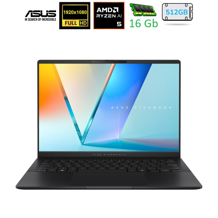 | ASUS Vivobook S 14 ASUS Vivobook S 14 змінює уявлення про сучасний ноутбук завдяки новітнім технологіям і витонченому мінімалістичному дизайну. У максимальній конфігурації він оснащений процесором AMD Ryzen з новітнім модулем NPU, що пропонує першокласну продуктивність (до 50 TOPS), відкриваючи абсолютно нові можливості завдяки технологіям штучного інтелекту. Окрема клавіша Copilot забезпечує миттєвий доступ до можливостей штучного інтелекту одним дотиком. Він має тонкий корпус завтовшки 1,39 см, який важить лише 1,3 кг, і оснащений акумулятором високої ємності – все для зручності роботи в дорозі. Ноутбук може похвалитися приголомшливим OLED-дисплеєм ASUS Lumina з роздільною здатністю до 3К, ергономічною клавіатурою з RGB-підсвічуванням, надзвичайно великим тачпадом і вебкамерою ASUS AI. Ідеальний компаньйон для сучасного життя! Витончений стильASUS Vivobook S 14 має товщину 1,39 см і важить лише 1,3 кг, що робить його справжнім уособленням портативності. Його легко брати із собою, незалежно від того, чи перебуваєте ви в дорозі, чи переїжджаєте з місця на місце. Насолоджуйтеся свободою роботи й розваг де б ви не були! Поєднання простоти й вишуканостіASUS Vivobook S 14 – ідеальний пристрій для демонстрації вашого високого смаку. Витончений мінімалістичний дизайн і вишуканий логотип, вигравіруваний за допомогою верстата з програмним керуванням, уособлює собою простоту й стиль. Neutral Black або Cool Silver. Суцільнометалевий корпус зі звуженими краями надає ноутбуку міцності й стійкості. Висока продуктивністьСтильний ASUS Vivobook S 14 має потужну конфігурацію, до якої входить процесор AMD до моделі Ryzen з модулем AMD Ryzen AI та підтримкою технології ASUS Memory Allocation Management для оптимізації використання оперативної пам'яті. Він чудово справляється з іграми, створенням контенту й програмами зі штучним інтелектом. Крім того, ноутбук оснащений окремою клавішею Copilot для швидкого доступу до ШІ-технологій в один дотик. Енергоефективність на найвищому рівніASUS Vivobook S 14 може похвалитися надзвичайною продуктивністю та апаратною підтримкою технологій ШІ. Його потужний процесор AMD Ryzen із вбудованим модулем прискорення ШІ-обчислень Ryzen AI та графічним ядром нового покоління AMD Radeon спрощують виконання будь-яких завдань. ASUS Vivobook S 14 створений для використання переваг сучасних технологій штучного інтелекту, будь то передавання чи перегляд потокового відео, редагування мультимедійного контенту, відеоконференції або програми для бізнесу. Холодний ноутбукХвилюєтеся, що ноутбук може сильно нагріватися? Будьте спокійні, технологія охолодження ASUS IceCool гарантує, що ASUS Vivobook S 14 зберігатиме прохолоду під навантаженням, тож він зможе безперешкодно виконувати навіть найскладніші завдання без зниження продуктивності. Фільтри, вбудовані в обох вентиляторах, запобігають всмоктуванню пилу й ворсин у корпус. Максимум енергіїЗабудьте про хвилювання щодо заряду акумулятора! ASUS Vivobook S 14 може похвалитися акумулятором підвищеної ємності, якого вистачить на цілий день. Крім того, завдяки технології швидкого заряджання ви зможете швидко повернутися до роботи або розваг без жодних затримок. Крім того, завдяки технології швидкого заряджання ви зможете швидко повернутися до роботи або розваг. Приголомшливий OLED-дисплейASUS Vivobook S 14 подарує неймовірні візуальні враження. Його 14-дюймовий OLED-дисплей із роздільною здатністю 3К і частотою оновле