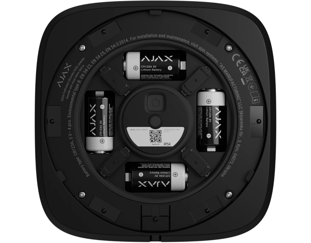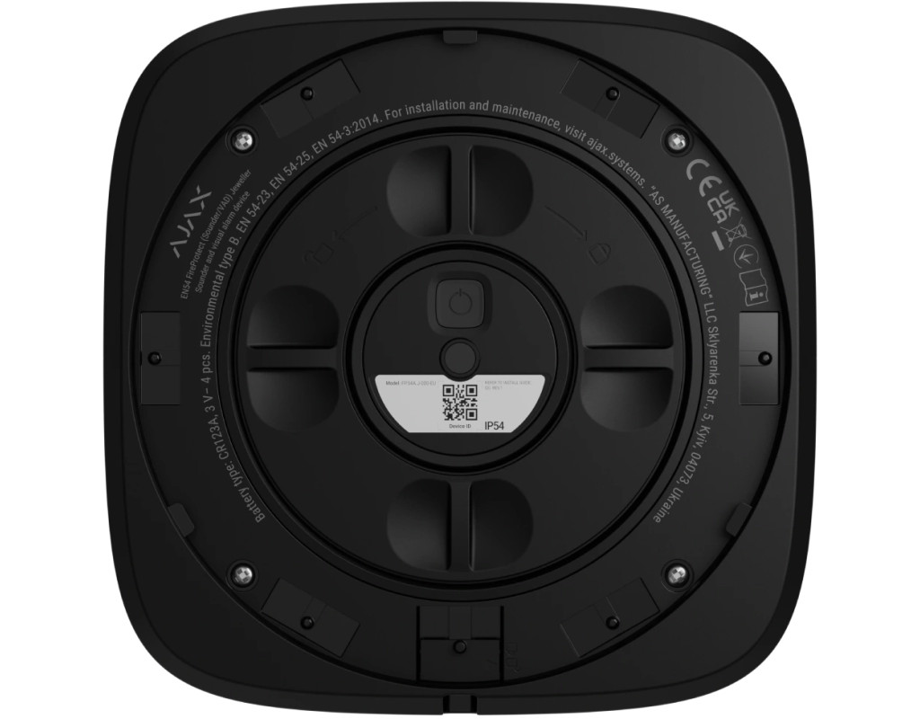 Ajax EN54 FireProtect Sounder Jeweller — це бездротовий адресний звуковий пожежний сповіщувач, призначений для оперативного оповіщення про пожежу звуковим сигналом. Пристрій сертифікований за стандартами EN 54-3 (звукові оповіщувачі) та EN 54-25 і забезпечує гучне та чітке попередження у комерційних і громадських приміщеннях. Описание товара Датчик пожежний звуковий Ajax EN54 FireProtect Sounder red, Jeweller, EN54, бездротовий, червоний Після отримання сигналу тривоги від підключених пожежних датчиків або хабу, вбудована сирена видає сигнал гучністю приблизно 85–100 дБ на відстані 1 метра, який відповідає часовому шаблону EN 54-3. Сигнал триває до моменту скасування тривоги або вручну вимикається користувачем. Передача даних до центрального приладу здійснюється через захищений радіопротокол Jeweller (868 МГц), який забезпечує стабільний двосторонній зв'язок на відстані до 1700–2000 м у відкритому просторі. Пристрій постійно моніторить свій стан, передаючи інформацію про низький заряд батареї, активацію tamper, втрату зв’язку або несправності з точним зазначенням пристрою та зони. Живлення забезпечується попередньо встановленою батареєю CR123A з додатковою резервною батареєю CR2032 для підтримки функції tamper. Час автономної роботи пристрою становить до 5 років за стандартного інтервалу опитування. Монтаж здійснюється через систему SmartBracket, що дозволяє закріпити пристрій без його розбирання. Підключення до системи виконується швидко через QR-код у мобільному застосунку. Світлодіодні індикатори (зелений, жовтий, червоний) дозволяють оперативно перевірити стан пристрою. |