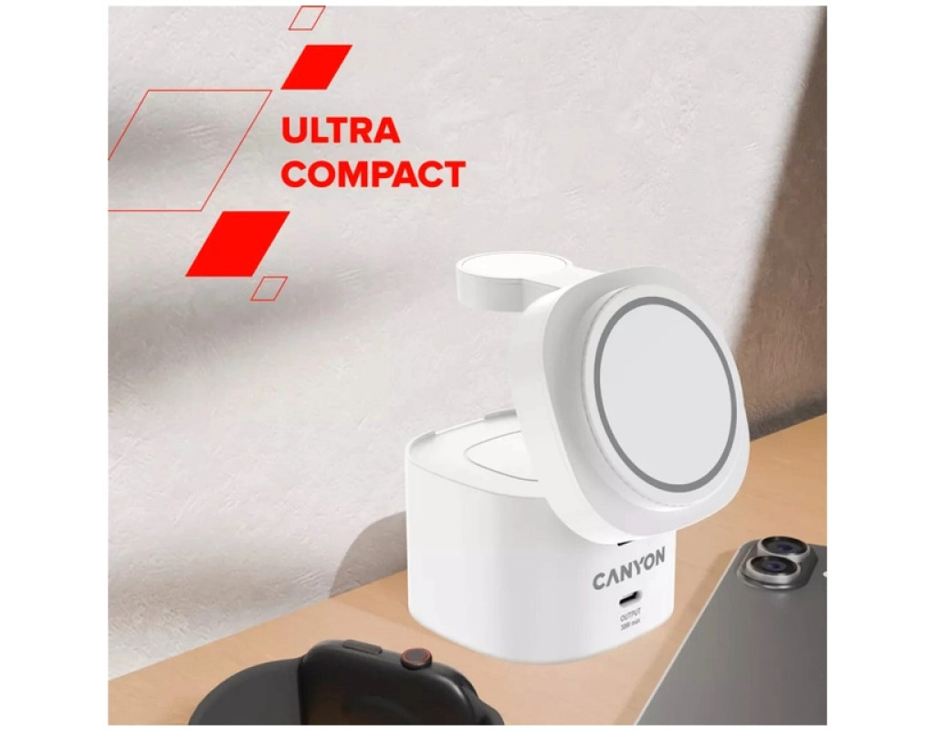 | Бездротовий зарядний пристрій Canyon OnCharge 405 – це інноваційне рішення для тих, хто цінує якість та зручність. Завдяки підтримці швидкої магнітної зарядки потужністю 15 Вт, сертифікацією Qi2 та можливістю заряджати пристрої як iPhone, так і Apple Watch та AirPods, ви отримуєте надійне заряджання всіх ваших гаджетів в одному ергономічному просторі. Магнітне вирівнювання та міцне кріплення забезпечують стабільність навіть для великих телефонів, що робить зарядку ефективною, навіть під час використання пристрою. Окремий вихід USB Type-C потужністю 30 Вт підтримує технології Power Delivery 3.0, Wireless Fast Charge та PowerIQ, дозволяючи швидко заряджати будь-які сумісні пристрої. Компактні розміри (всього 70 мм з кожного боку) дозволяють розмістити підставку на робочому столі чи тумбочці, зберігаючи порядок без жертвування швидкістю чи універсальністю заряджання. Зарядний пристрій оснащений чотирма рівнями захисту від перенапруги, перевантаження по струму, перегріву та коротких замикань, гарантуючи безпеку пристроїв. Протиковзка силіконова поверхня захищає від небажаного ковзання, тоді як точна магнітна конструкція забезпечує ідеальне положення під час заряджання. Canyon OnCharge 405 – це розумний вибір для тих, хто шукає поєднання якості, функціональності та сучасного дизайну в одному потужному пристрої. Відмовтеся від безладу та насолоджуйтеся простим, швидким та безпечним заряджанням кожного вашого гаджета. |