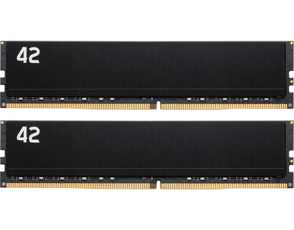 Exceleram 42 DDR4/DDR5 U-DIMM – універсальна та надійна оперативна пам’ять Нова серія оперативної пам’яті 42 від Exceleram створена як відповідь на будь-які питання про пам’ять – навіть ті, які ви ще не ставили. Назва серії «42» відсилає до культового фільму «Автостопом по Галактиці», де число 42 символізує «відповідь на головне питання життя, Всесвіту і всього такого». Серія 42 розроблена, щоб забезпечити стиль, сумісність та надійність у будь-якій збірці. Модулі оснащені анодованим алюмінієвим радіатором, який ефективно відводить тепло та надає мінімалістичного чорного дизайну вашій збірці. Низькопрофільна висота 38,5 мм дозволяє встановлювати пам’ять у компактні корпуси (SFF) та під великі процесорні кулери без обмежень. Серія 42 підтримує Dual Channel та Single Channel конфігурації, сумісна з платформами Intel та AMD. Всі модулі виготовляються на Тайвані та тестуються вручну для забезпечення повної сумісності та стабільної роботи у будь-яких конфігураціях. Модулі серії 42 доступні в широкому діапазоні обсягів та налаштувань, підтримують різні латентності та напруги, що дозволяє підбирати оптимальну конфігурацію під будь-які завдання – від домашнього ПК до робочої станції чи ігрового комп’ютера. Exceleram надає довічну обмежену гарантію на всі модулі серії 42, підкреслюючи надійність та довговічність своїх продуктів. Виробник гарантує, що ваша оперативна пам’ять прослужить стільки ж, скільки й ваша збірка, навіть при інтенсивному використанні. Серія 42 DDR4/DDR5 U-DIMM поєднує у собі: