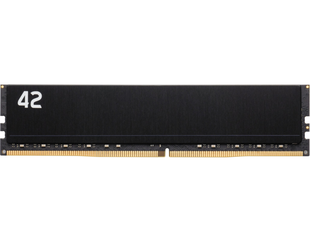 Exceleram 42 DDR4/DDR5 U-DIMM – універсальна та надійна оперативна пам’ять Нова серія оперативної пам’яті 42 від Exceleram створена як відповідь на будь-які питання про пам’ять – навіть ті, які ви ще не ставили. Назва серії «42» відсилає до культового фільму «Автостопом по Галактиці», де число 42 символізує «відповідь на головне питання життя, Всесвіту і всього такого». Серія 42 розроблена, щоб забезпечити стиль, сумісність та надійність у будь-якій збірці. Модулі оснащені анодованим алюмінієвим радіатором, який ефективно відводить тепло та надає мінімалістичного чорного дизайну вашій збірці. Низькопрофільна висота 38,5 мм дозволяє встановлювати пам’ять у компактні корпуси (SFF) та під великі процесорні кулери без обмежень. Серія 42 підтримує Dual Channel та Single Channel конфігурації, сумісна з платформами Intel та AMD. Всі модулі виготовляються на Тайвані та тестуються вручну для забезпечення повної сумісності та стабільної роботи у будь-яких конфігураціях. Модулі серії 42 доступні в широкому діапазоні обсягів та налаштувань, підтримують різні латентності та напруги, що дозволяє підбирати оптимальну конфігурацію під будь-які завдання – від домашнього ПК до робочої станції чи ігрового комп’ютера. Exceleram надає довічну обмежену гарантію на всі модулі серії 42, підкреслюючи надійність та довговічність своїх продуктів. Виробник гарантує, що ваша оперативна пам’ять прослужить стільки ж, скільки й ваша збірка, навіть при інтенсивному використанні. Серія 42 DDR4/DDR5 U-DIMM поєднує у собі:
