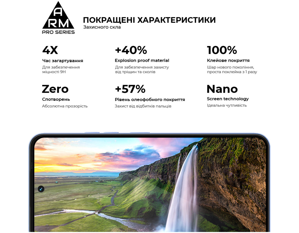 Захисне скло Armorstandart Pro Series - це абсолютно новий рівень захисту дисплея смартфона. У виробництві використовується матеріал Japenese Asahi Glass, який проходить загартування впродовж 4 годин. Це забезпечує ідеальну прозорість захисного покриття без спотворень зображення, а також потужний захист від тріщин і подряпин. Скло ніяк не впливає на чуйність тачскрина. У ньому міститься спеціальний матеріал, що перешкоджає появі відколів. Верхня частина скла містить покращене олеофобне й гідрофобне покриття. Під час використання скла це забезпечує природні тактильні відчуття - пальці легко ковзають по поверхні. Водночас зображення відбивається з автентичною яскравістю й чіткістю без спотворень. Задня частина по всій площі покрита клейовою основою нового покоління. Завдяки цьому досягається повний брак пухирців і можливість переклеювання скла в разі первісного нерівного встановлення. Захисне скло Armorstandart Pro Series має оптимальні габарити та товщину на 0,3 мм. Передбачено вирізи під усі датчики, камери та роз'єми. До комплекту входить усе потрібне для швидкого та комфортного встановлення. Особливості: