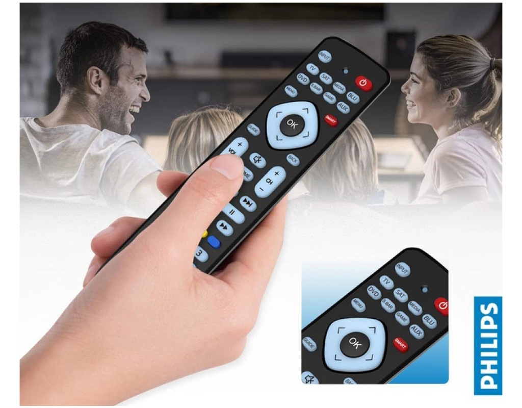 За допомогою зручного універсального пульта дистанційного керування Philips можна керувати 8 пристроями. Кнопки дистанційного керування зручно організовані для полегшення доступу та підтримки спеціальних функцій пристрою (наприклад, всі функції DVD-програвача в одному місці). Повна сумісність із вашими пристроями.