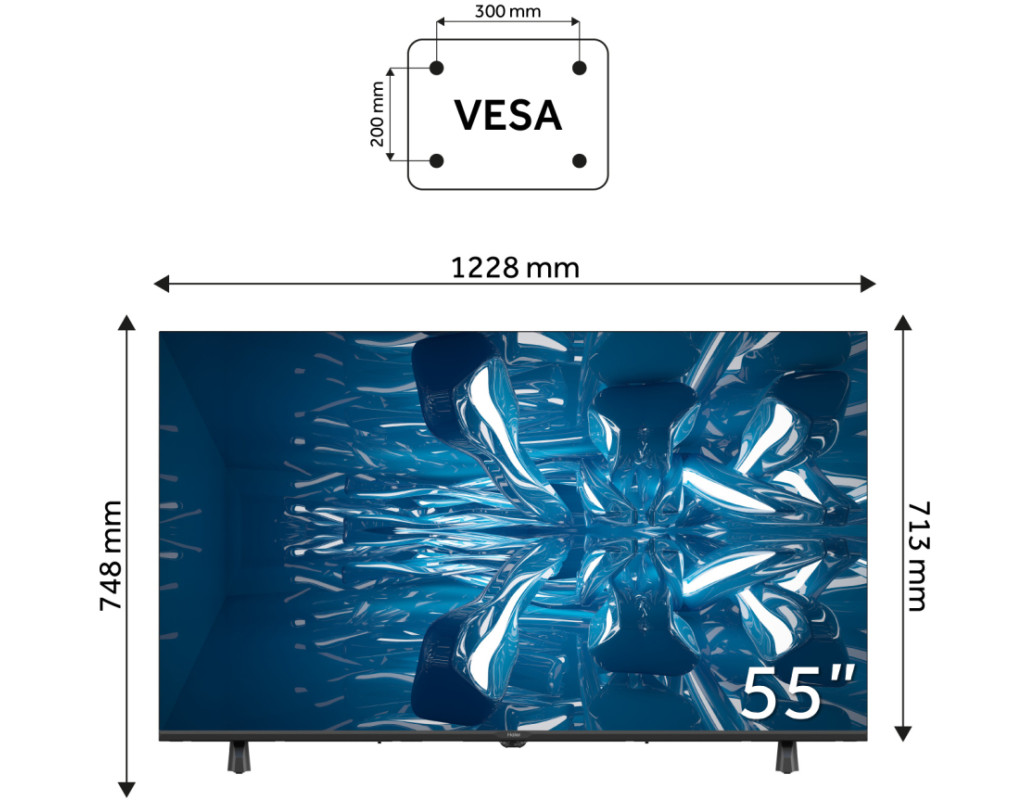 | Телевізор Haier H55K85FUX — сучасний вибір для справжніх поціновувачів якості, які бажають насолоджуватися винятковим звуком та чітким зображенням. Цей телевізор із діагоналлю 55 дюймів та роздільною здатністю 3840 x 2160 пікселів дозволяє перенестися у світ неймовірних моментів, роблячи кожен кадр реалістичним та деталізованим. Оснащений LCD-матрицею із Mini LED підсвічуванням, телевізор забезпечує яскраві та насичені кольори. Частота розгортки панелі становить 60 Гц, що в поєднанні з просунутими технологіями поліпшення зображення, такими як DBX-TV, Dolby Vision, HLG, HDR10 та MEMC, робить зображення більш плавним та чітким. Haier H55K85FUX підтримує різноманітні стандарти цифрового телебачення, зокрема DVB-T, DVB-T2, DVB-S2, DVB-C, та DVB-S, що дозволяє переглядати широкий спектр каналів у відмінній якості. Завдяки інтегрованим бездротовим модулям Wi-Fi та Bluetooth, користувач може під'єднуватися до інтернету та інших пристроїв без зайвих зусиль. Smart TV на базі Google TV розширює можливості вашого телевізора до меж мультимедійного розваги. Переглядайте улюблені серіали та фільми через онлайн-платформи, користуйтеся додатками та грайте у захопливі ігри. Підтримка бездротових технологій дозволяє легко підключати додаткові пристрої та аксесуари. Завдяки потужним стереодинамікам на 20 Вт, які озвучені Dolby Audio, дивіться фільми з повним зануренням у звучання. Телевізор підтримує всі необхідні інтерфейси підключення, зокрема 4 порти HDMI, 2 порти USB, а також включає аудіовихід, CI-слот, RJ-45 та композитний вхід. Це дає змогу без проблем приєднувати різноманітні зовнішні пристрої. Елегантний мінімалістичний дизайн телевізора Haier додасть вашому інтер'єру сучасного шарму. Легкість настінного монтажу забезпечується підтримкою кріплення VESA (200x200мм), роблячи установку максимально простою та адаптивною до ваших потреб. Ви оціните поєднання високої якості зображення, звуку та функціональності, яке робить телевізор Haier H55K85FUX ідеальним вибором для будь-якої сучасної вітальні. Це більше ніж просто телевізор — це центр розваг, який радує своєю технологічною довершеністю та стильним виглядом. |