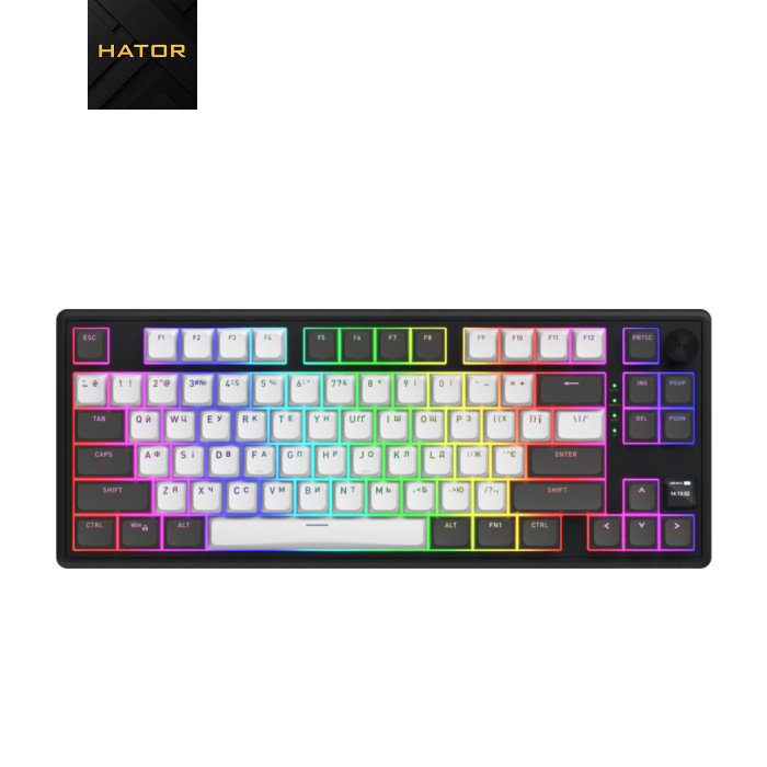 Механічні перемикачі HATOR® Aurum Vanila Silent Попередньо змащені лінійні свічі забезпечують надзвичайно плавне та точне спрацьовування, залишаючись при цьому майже беззвучними — ідеальний вибір для комфортного тайпінгу та ігрового процесу без зайвого шуму. Інтегрована лінза рівномірно розподіляє підсвічування, роблячи легенди на клавішах яскравими та чіткими навіть у темряві.