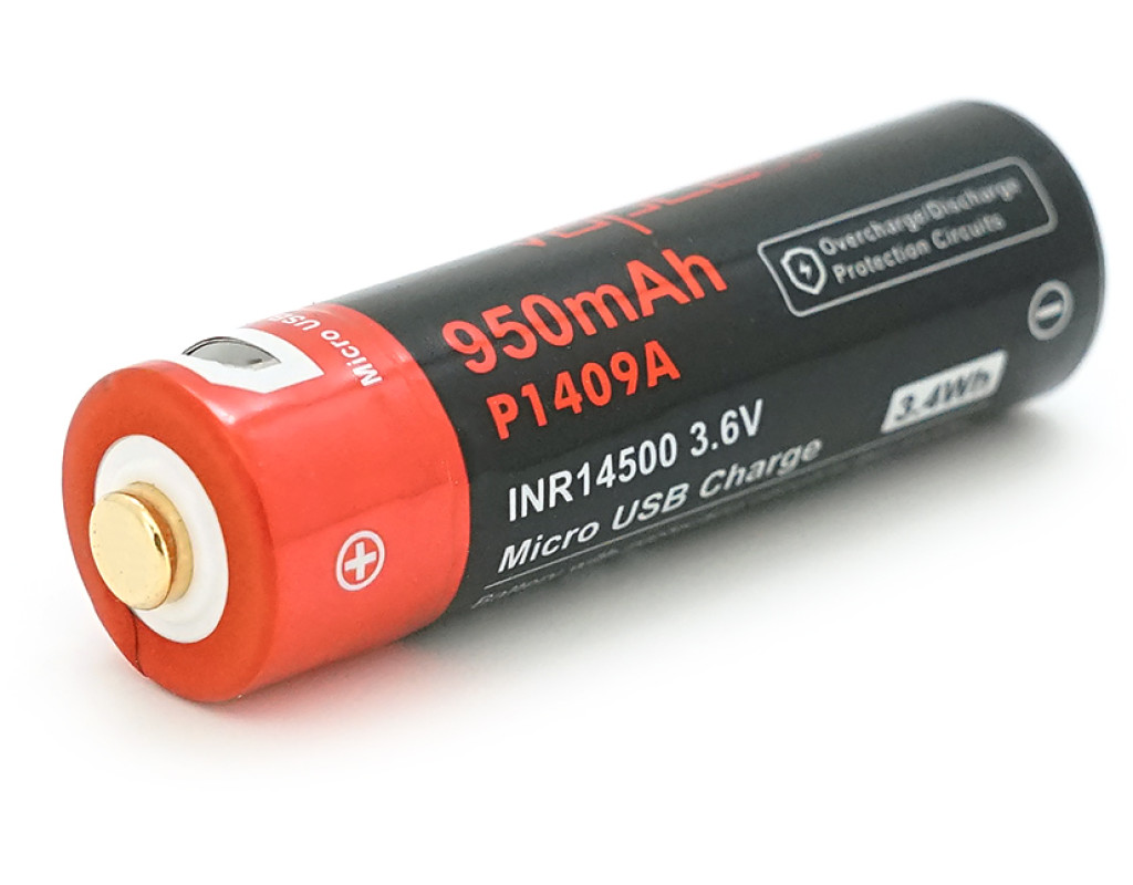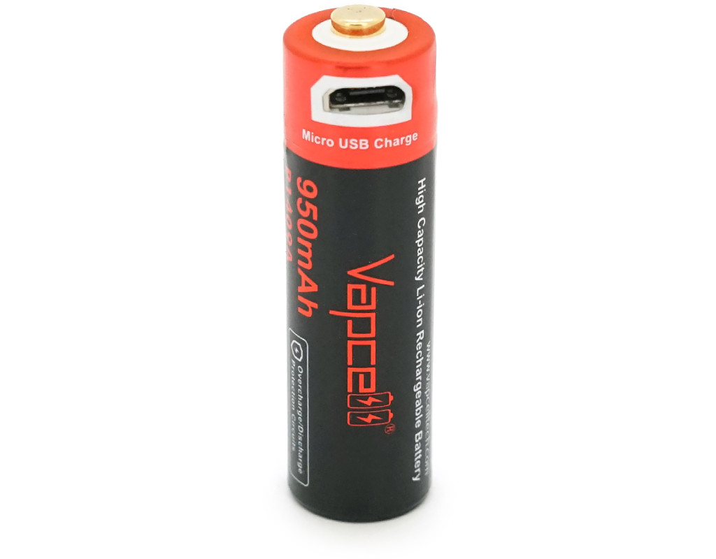 Акумулятор 14500 Li-Ion Vapcell P1409A, 950mAh, 3.6V, Micro USB