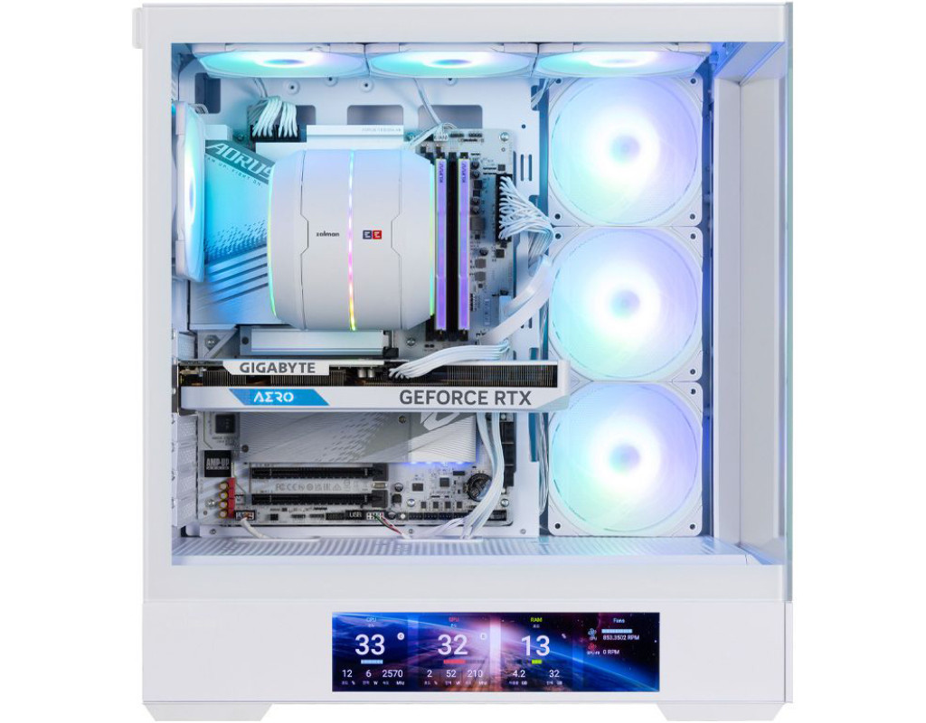 Дві безрамкові панелі із загартованого скла (спереду та збоку) демонструють приголомшливу збірку ПК. Загартоване скло товщиною 4 мм забезпечує виняткову міцність. 9.1-дюймовий дисплей Надає різну інформацію, таку як стан процесора, відеокарти, оперативної пам’яті, накопичувача, швидкість обертання вентилятора, погода, годинник, рівень запиленості тощо. Ефективне охолодження Вібрація лопатей зведена до мінімуму завдяки відсутності тремтіння лопатей під час роботи вентилятора. Шум зводиться до мінімуму завдяки мінімізації вихрових явищ, що виникають на лопатях. Контролер ARGB Контролер і кнопка керування на передній панелі забезпечують різноманітні ефекти. Підключіть до материнської плати 5V RGB конектор для створення різних режимів RGB. Загартоване скло Бічну панель можна легко і повністю зняти для зручного доступу до компонентів ПК. Легке зняття панелі забезпечується пазовою конструкцією кріплення в нижній частині загартованого скла. Необмежений потенціал охолодження Конструкція з боковим всмоктуванням повітря в поєднанні з оптимізованим розміщенням вентиляторів забезпечує ідеальне охолодження та чудовий внутрішній повітряний потік. Ефективна система прокладання кабелів 34-міліметровий простір для кабелів допомагає тримати кабелі впорядкованими. Спеціальна опора для відеокарти в комплекті В комплекті є опора для підтримки відеокарти, що запобігає провисанню, та підтримує широкий діапазон розмірів відеокарт. Магнітні пилові фільтри зверху та знизу Магнітні пилові фільтри зверху та знизу ефективно мінімізують накопичення пилу, забезпечуючи при цьому швидке відведення тепла під час роботи. |
