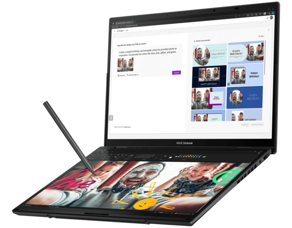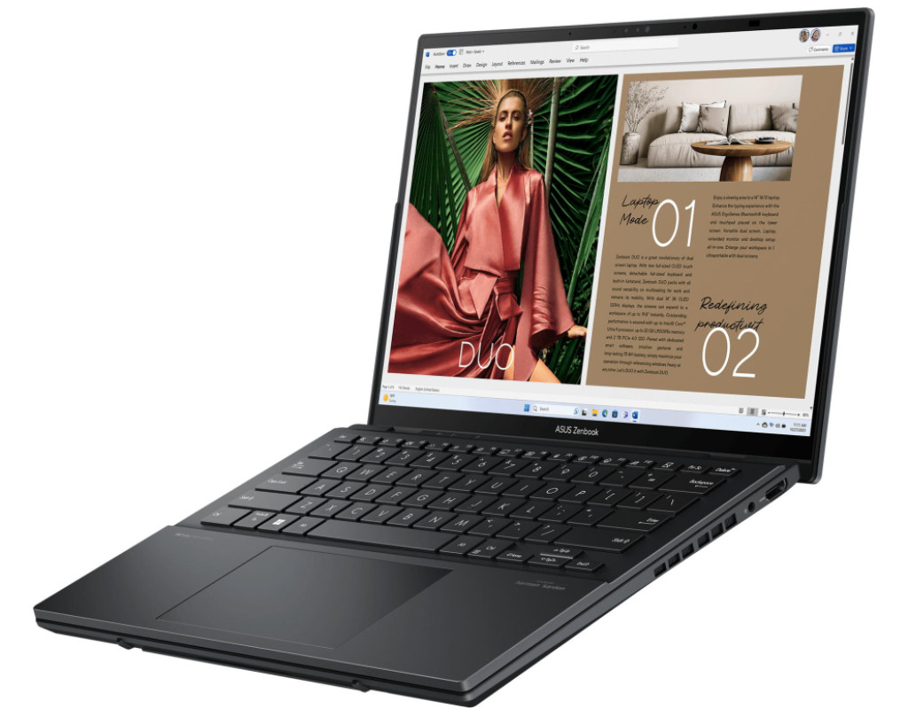Потужна конфігурація Zenbook DUO наділений швидким процесором зі спеціальним прискорювачем для штучного інтелекту. Також до його конфігурації можуть входити твердотільний накопичувач місткістю 2 ТБ, оперативна пам'ять об'ємом 32 ГБ і бездротовий модуль Wi-Fi 7.