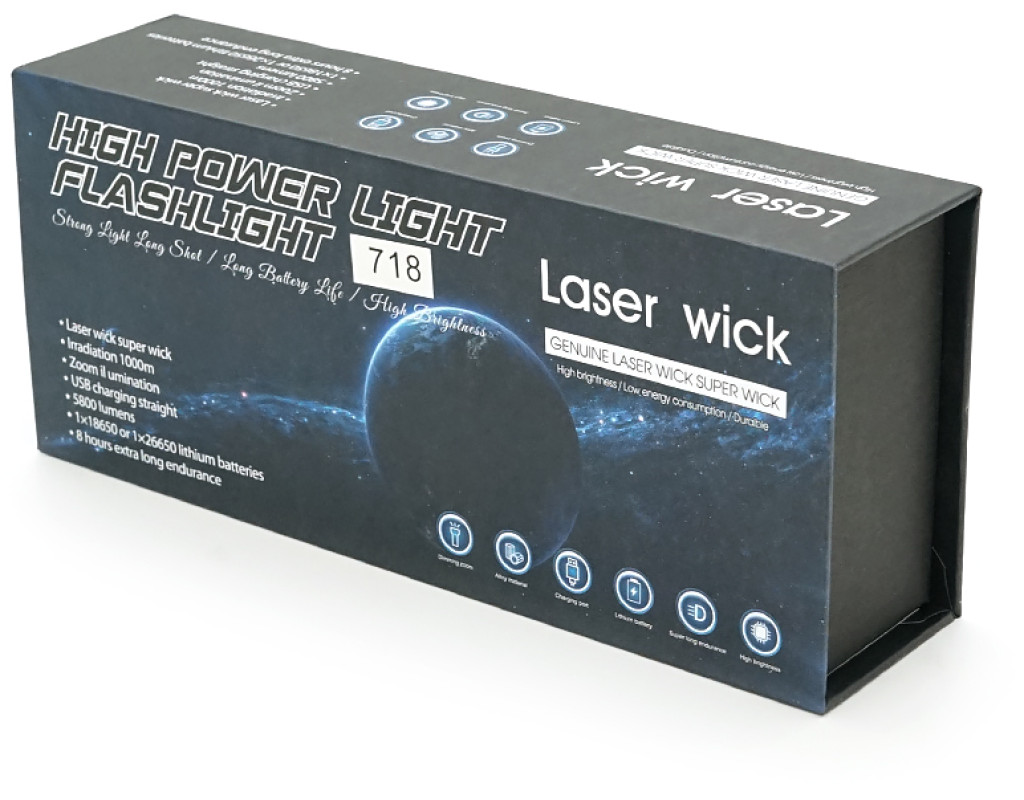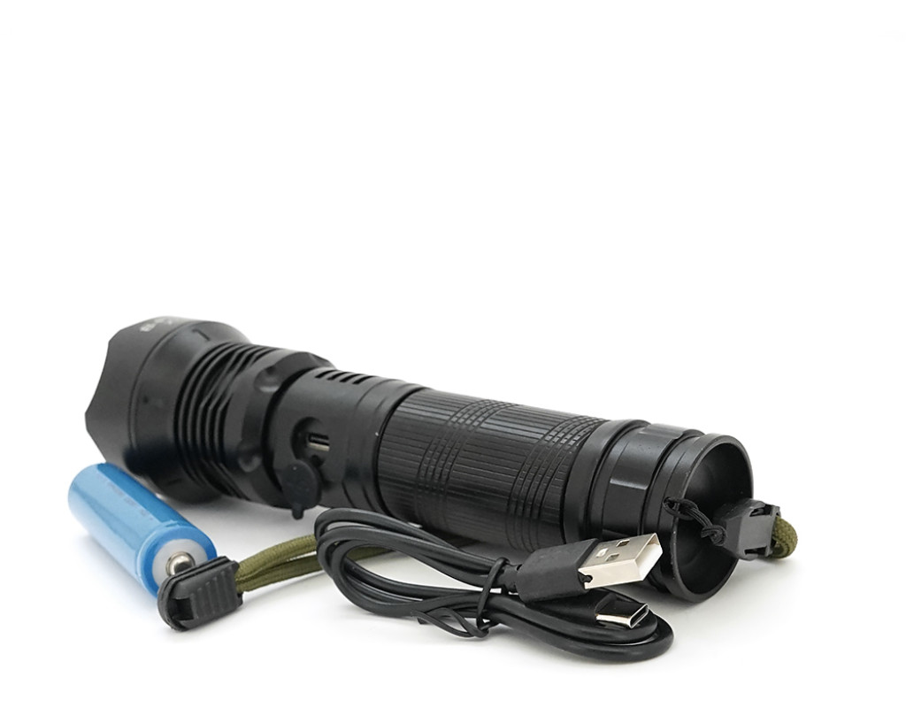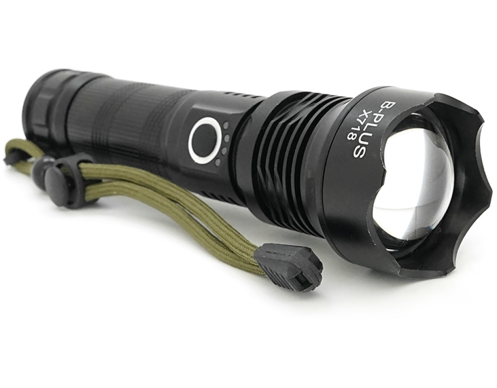 Ліхтарик BP-X718 P90, Zoom, 1 режим, корпус метал, акум 18650, індикація заряду, USB кабель, BOX