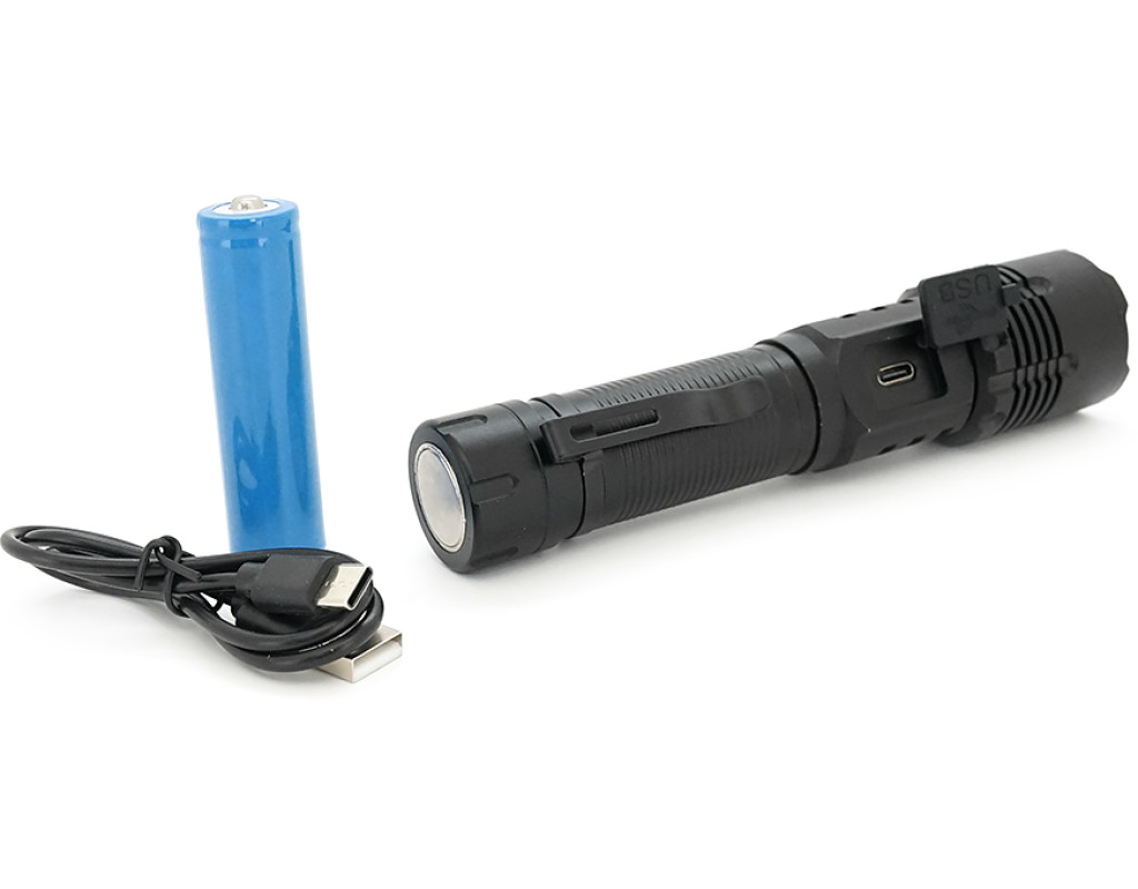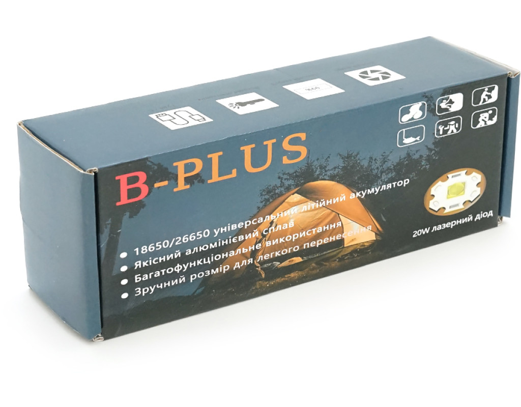 Ліхтарик BP-C18 P50, Zoom, 1+2 режими, корпус метал, магніт, акум 18650, індикація заряду, USB кабель, BOX