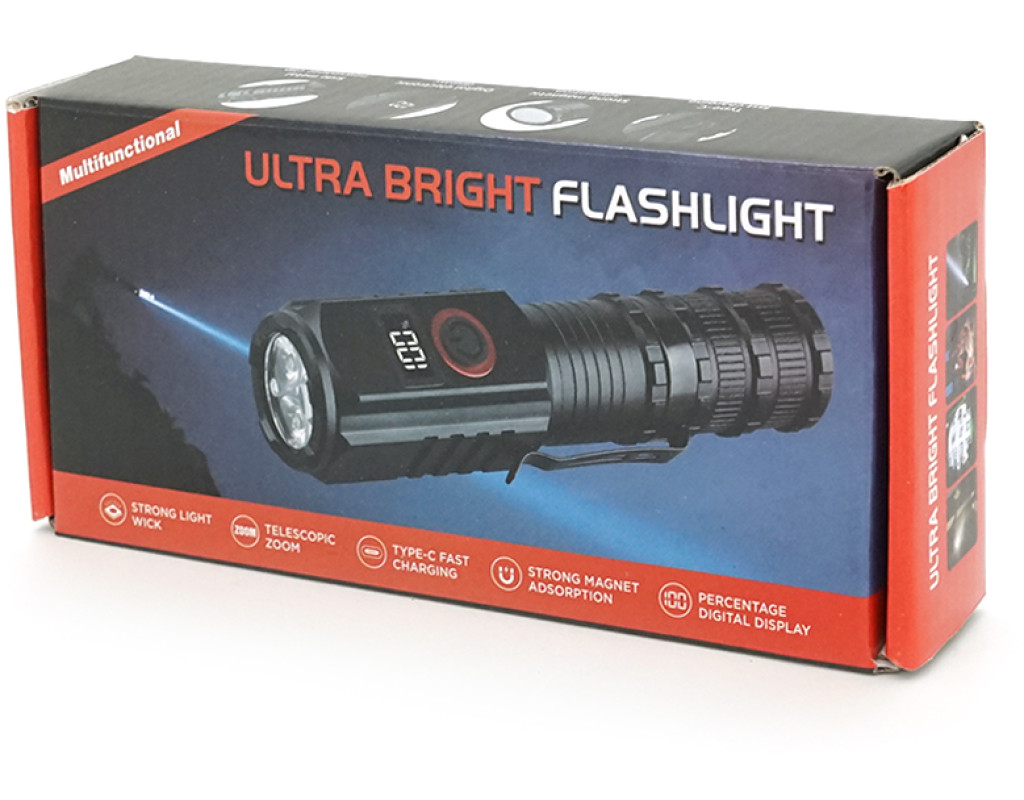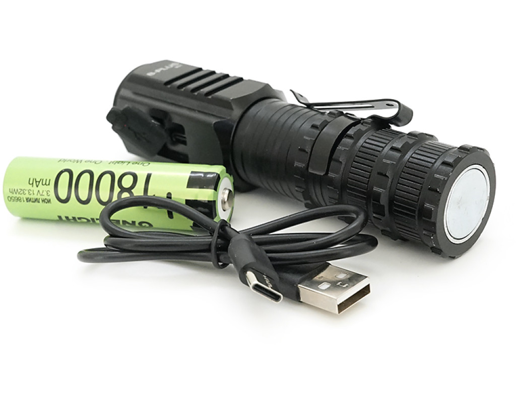 Ліхтарик ручний BP-301R, 3 режими, корпус алюміній, магніт, індикація заряду, акумулятор 18650, кабель USB, BOX