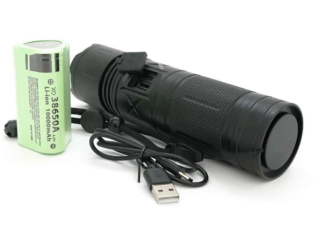 Ліхтар пошуковий BP-W920 LED PM60, Zoom, 4 режими, індикація заряду, живлення від 3*18650, IP65, кабель USB, 210х100х70мм, 0,570кг, Black, BOX