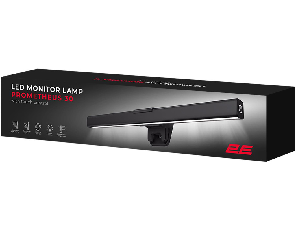 | 2E PROMETHEUS 30 – це компактне та зручне LED-рішення для освітлення робочої зони біля ПК. Лампа із сенсорним керуванням забезпечує спрямоване світло без відблисків на екрані. Яскравість – 230 лм, кут освітлення – 45°, передбачено функцію димування. Модель підтримує три температурні режими світіння (3 000 K, 5 000 K, 6 500 K), що дає змогу адаптувати освітлення до різних умов. Виготовлена з міцного алюмінію, довжина корпусу – 30 см. Оснащена рознімами USB-A/USB-C і прищіпкою для кріплення, лампа сумісна з моніторами діагоналлю від 13 до 34 дюймів.
