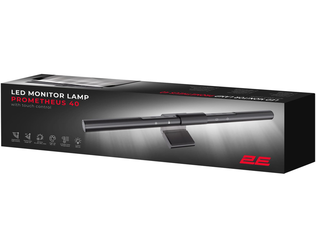 | 2E PROMETHEUS 40 – це стильне та практичне рішення для освітлення робочої зони біля ПК. Оснащена сенсорним керуванням і функцією димування, лампа випромінює комфортне світло без відблисків на екрані. Яскравість – 255 лм, кут освітлення – 45°. Із чотирьох температурних режимів (від 3 000 K до 6 500 K) можна вибрати найзручніший для роботи чи геймінгу. Конструкцією передбачено міцний алюмінієвий корпус 39 см, підключення через USB-C і сумісність із моніторами 13–34 дюймів.