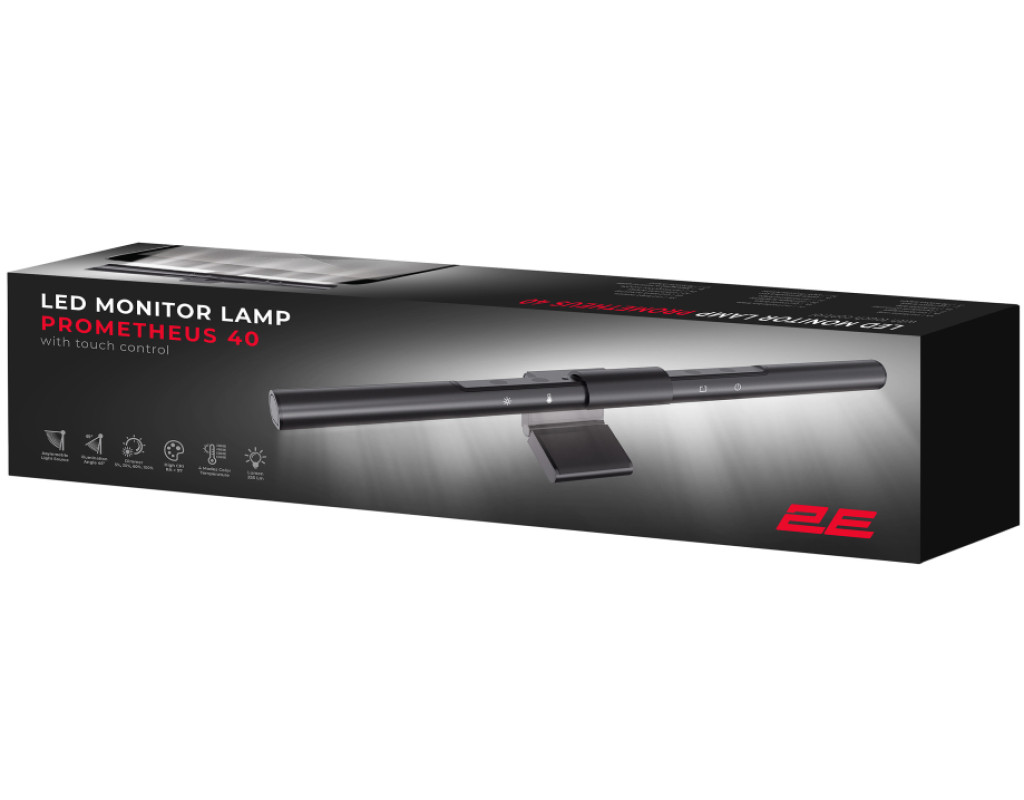 2E PROMETHEUS 40 – це стильне та практичне рішення для освітлення робочої зони біля ПК. Оснащена сенсорним керуванням і функцією дімування, лампа випромінює комфортне світло без відблисків на екрані. Лампа в міцному алюмінієвому корпусі створена для тих, хто цінує комфорт і якість освітлення під час роботи за комп’ютером. Завдяки продуманій конструкції вона не створює відблисків на екрані, що суттєво знижує навантаження на очі навіть під час тривалих робочих сесій. Пристрій кріпиться безпосередньо на верхню частину монітора, не займаючи корисний простір на столі, що особливо зручно в умовах обмеженого робочого місця. Інтуїтивне керування та гнучкі режими світла Однією з ключових переваг моделі є сенсорне керування, яке робить зміну налаштувань максимально простою та швидкою. Функція дімування дозволяє плавно регулювати яскравість відповідно до індивідуальних потреб користувача. Чотири режими колірної температури — 3000K, 4000K, 5000K і 6500K — дають змогу обрати оптимальне освітлення для будь-якої ситуації, від м’якого теплого світла для вечора до холодного, що сприяє концентрації вдень. Сучасний дизайн і широка сумісність Лампа виконана у витягнутому корпусі довжиною 39 см з компактними габаритами 392×22 мм, завдяки чому вона виглядає мінімалістично та непомітно, водночас залишаючись максимально ефективною. Конструкція сумісна з моніторами з діагоналлю від 13 до 34 дюймів і легко встановлюється без використання додаткових інструментів. Кут освітлення 45° забезпечує рівномірний розподіл світла по всій робочій поверхні. Зручне підключення та енергоефективність Живлення лампи здійснюється через сучасний інтерфейс USB-C, який гарантує стабільну роботу при потужності 5 Вт. Світловий потік яскравістю 255 люменів забезпечує комфортне освітлення навіть у повністю затемненому приміщенні. Кабель довжиною 1,2 м дозволяє зручно організувати підключення до джерела живлення, зберігаючи порядок і ергономіку робочого простору. |