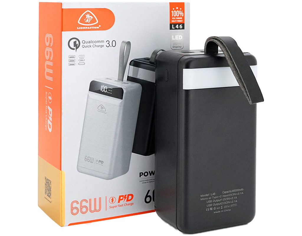 LIONPATTON L46 – це високотехнологічний зовнішній акумулятор ємністю 60 000 мАг, який стане вашим незамінним помічником у відрядженнях, подорожах чи будь-яких інших ситуаціях, коли доступ до електромережі обмежений. |