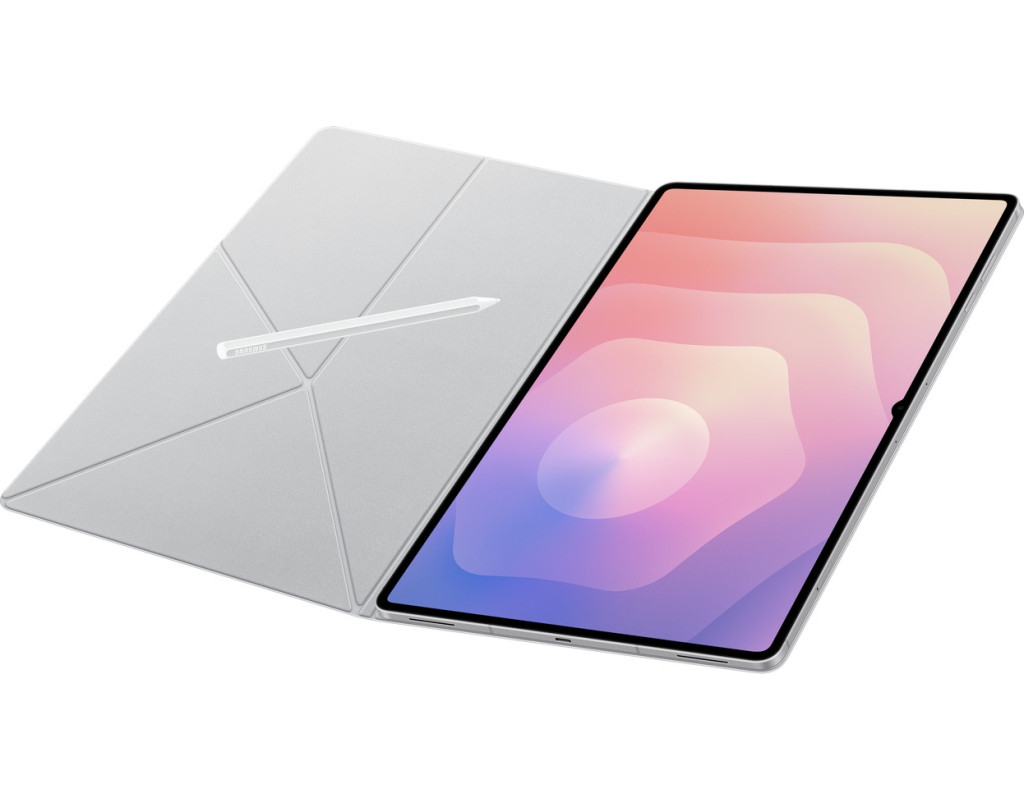 Портативність і зручність Тонкий і легкий чохол-книжка ідеально підходить для комфортного користування планшетом у будь-яких умовах. Його мінімалістичний дизайн забезпечує максимальну портативність, а магнітне кріплення дозволяє швидко та зручно фіксувати планшет, щоб легко брати його з собою на роботу, у подорож або для відпочинку. Універсальність перегляду Чохол-книжка має дві позиції для перегляду — вертикально та горизонтально. Завдяки складній передній кришці ви зможете встановити свій Galaxy Tab під зручним кутом для роботи, читання або перегляду контенту. Стиль та захист Преміальний зовнішній вигляд чохла підкреслює металева рамка навколо камери. М’яка мікрофібра усередині дбайливо захищає планшет від подряпин та потертостей, зберігаючи його ідеальний стан зсередини та зовні. Ідеальний вибір для тих, хто цінує поєднання стилю, захисту і зручності! |