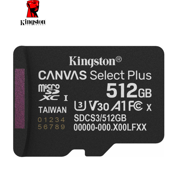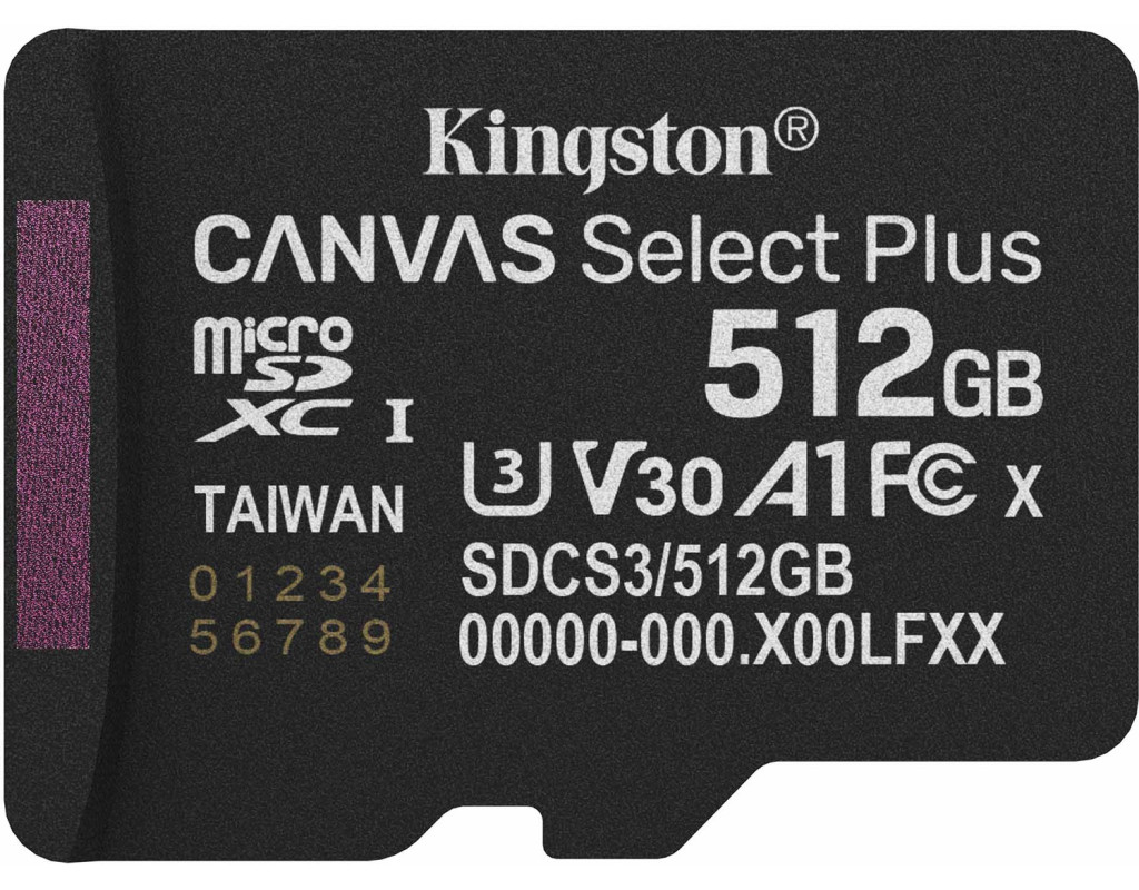 Memory card microSDXC 512GB Kingston Canvas Select Plus Gen3 C10 A1, Retail