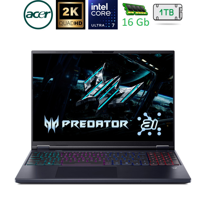 Зробіть крок у майбутнє з Predator Helios Neo 16S AI — потужним ігровим комп'ютером, створеним для зручності в дорозі. Цей портативний комп'ютер оснащений процесором Intel® Core™ Ultra 9, графічним процесором NVIDIA® GeForce RTX™ 5070 Ti і яскравим 16-дюймовим OLED-дисплеєм з роздільною здатністю WQXGA та частотою оновлення 240 Гц/1 мс.