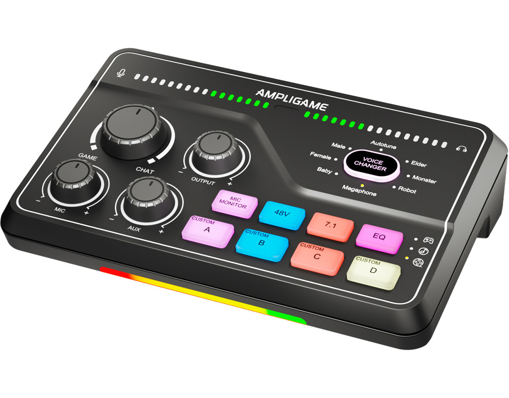 FIFINE AmpliGame SC8 Black сумісний із більшістю мікрофонів завдяки комбо-входу XLR/6.35 мм та фантомному живленню 48 В. Підходить для конденсаторних (наприклад, FIFINE K690, K658, K669C) і динамічних моделей (K688 та інші XLR-мікрофони), а також може використовуватись із інструментами через 6.35 мм вхід. Ігровий USB мікшерний пульт створений, щоб робити ігри та запис цекавішим FIFINE AmpliGame SC8 Black — ігровий USB-мікшерний пульт, створений, щоб зробити ваші стріми та записи цікавішими та професійнішими. Він дозволяє одночасно керувати гучністю гри, голосового чату та мікрофона, забезпечуючи ідеальний баланс звуку без затримок. Завдяки інтуїтивним регуляторам ви можете швидко змінювати рівні, додавати ефекти чи змінювати голос у реальному часі. Це зручне рішення для геймерів, стрімерів і контент-мейкерів, які хочуть повністю контролювати звук і створювати якісний контент без складних налаштувань. Підсвічування Він дозволяє регулювати баланс між грою, голосом і мікрофоном у реальному часі, додаючи ефекти та зміну голосу одним натисканням. Модель вирізняється 15 режимами RGB-підсвічування, серед яких — статичний одноколірний, динамічний багатоколірний градієнт і пульсуючий градієнт. Яскраве підсвічування не лише створює атмосферу, а й робить мікшер стильним елементом вашої геймерської студії. Легке підключення Завдяки універсальному інтерфейсу USB-C мікшер FIFINE AmpliGame SC8 Black забезпечує максимально просте та швидке підключення без потреби у драйверах чи складних налаштуваннях. Просто під’єднайте його до комп’ютера або консолі, і пристрій автоматично розпізнається системою. Мікшер повністю сумісний із ПК, ноутбуками, PlayStation та іншими консолями, що дозволяє зручно перемикатися між платформами залежно від ваших потреб — чи то стрім на ПК, чи ігрова сесія на PS5. 7.1 віртуальний обʼємний звук FIFINE AmpliGame SC8 Black підтримує віртуальний 7.1 об’ємний звук, що забезпечує глибоке занурення у гру чи запис. Ви чітко чуєте напрямок звуків — від кроків до ефектів — отримуючи перевагу в іграх і реалістичне аудіо під час стрімів. Навіть зі звичайними навушниками звук стає просторовим і насиченим. 5 кнопок для звукових ефектів Оснащений 5 кнопками для звукових ефектів, які дозволяють миттєво додавати емоційність і настрій у ваші стріми чи записи. Ви можете призначити улюблені звуки, реакції або мелодії та запускати їх одним натисканням. Це зручно для створення інтерактивного контенту, живих ефірів і подкастів — без потреби у сторонньому софті чи додаткових пристроях. 4 режими еквалайзера Оснащений 4 режимами еквалайзера — ігри, музика, фільми та плавний режим. Кожен з них оптимізує звучання під конкретний сценарій: