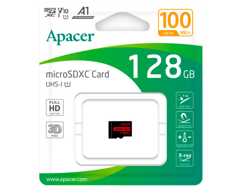 Модуль пам'яті Micro SD 128GB Apacer class 10 UHS-I V10 A1 (AP128GMCSX10UB-RA)