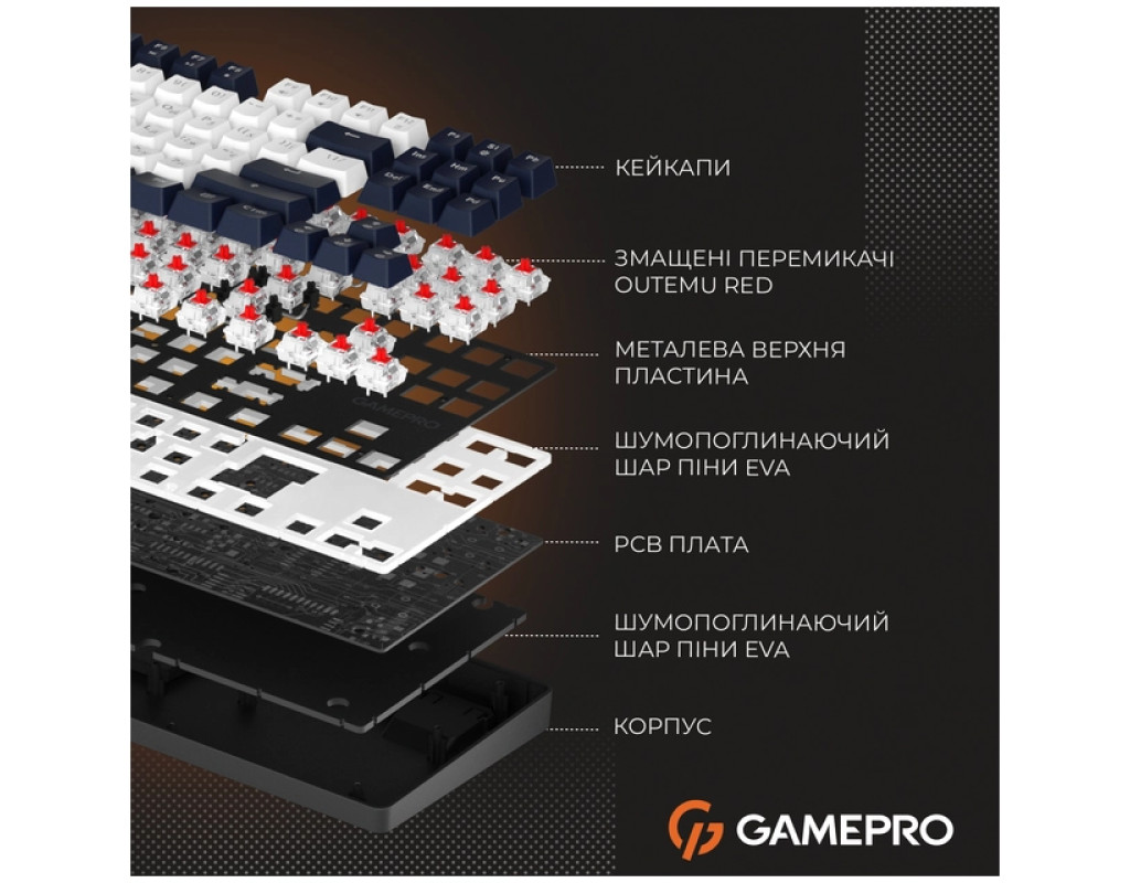 | Ігрова клавіатура GamePro Genesis Metallic MK110B — це ідеальне рішення для всіх, хто цінує якість, довговічність та комфорт у кожній деталі. Ця механічна клавіатура з підсвіткою поєднує в собі всі необхідні функції для геймерів і професіоналів, які працюють за ПК. Конструкція цієї клавіатури виконана у стильному дизайнерському рішенні skeleton, що ставить акценти на сучасний ігровий стиль. Відкрита верхня металева панель додає не тільки естетики, але й значно полегшує очищення. У поєднанні з білим LED-підсвічуванням, клавіатура створює неймовірно стильний і сучасний вигляд, дозволяючи легко знаходити потрібні клавіші навіть у темряві. Оснащена механічними перемикачами Outemu Red, клавіатура забезпечує надзвичайну швидкість реакції та плавне натискання, що є важливим для ігор, де кожна мілісекунда вирішальна. Ці лінійні перемикачі є тихими і не мають клацання, що робить їх ідеальними не тільки для ігор, але й для роботи, наприклад, програмування. Завдяки функції Hot-Swap, ви зможете легко замінити перемикачі, не вдаючись до пайки, що забезпечує додаткову зручність і гнучкість в налаштуванні під ваші потреби. GamePro Genesis Metallic MK110B підтримує підключення через USB і є сумісною з різними операційними системами, включаючи Windows, Mac OS та Linux. Формат клавіатури TKL (без цифрового блоку) дозволяє зекономити місце на робочому столі, не жертвуючи зручністю та контрольними можливостями. Англійська та українська розкладки забезпечують зручність друку незалежно від вибраної мови, відкриваючи нові горизонти для гри та роботи. Металева верхня панель забезпечує міцність і жорсткість конструкції, тоді як пластикове нижнє покриття зберігає легкість та надійність. GamePro Genesis Metallic — це не просто клавіатура, а ваш надійний партнер у світі інтерактивних розваг. Вона поєднує точність, комфорт та сучасний дизайн, ідеально створена для тих, хто шукає по-справжньому надійного та естетично привабливого помічника у світі цифрових технологій. |