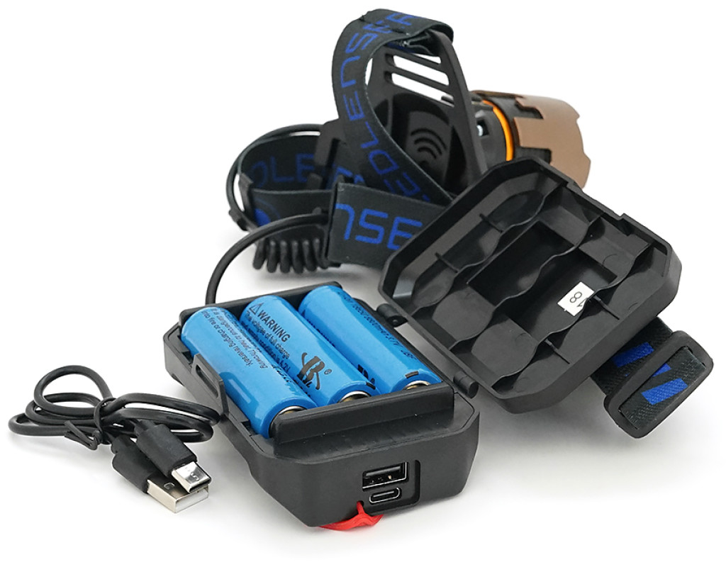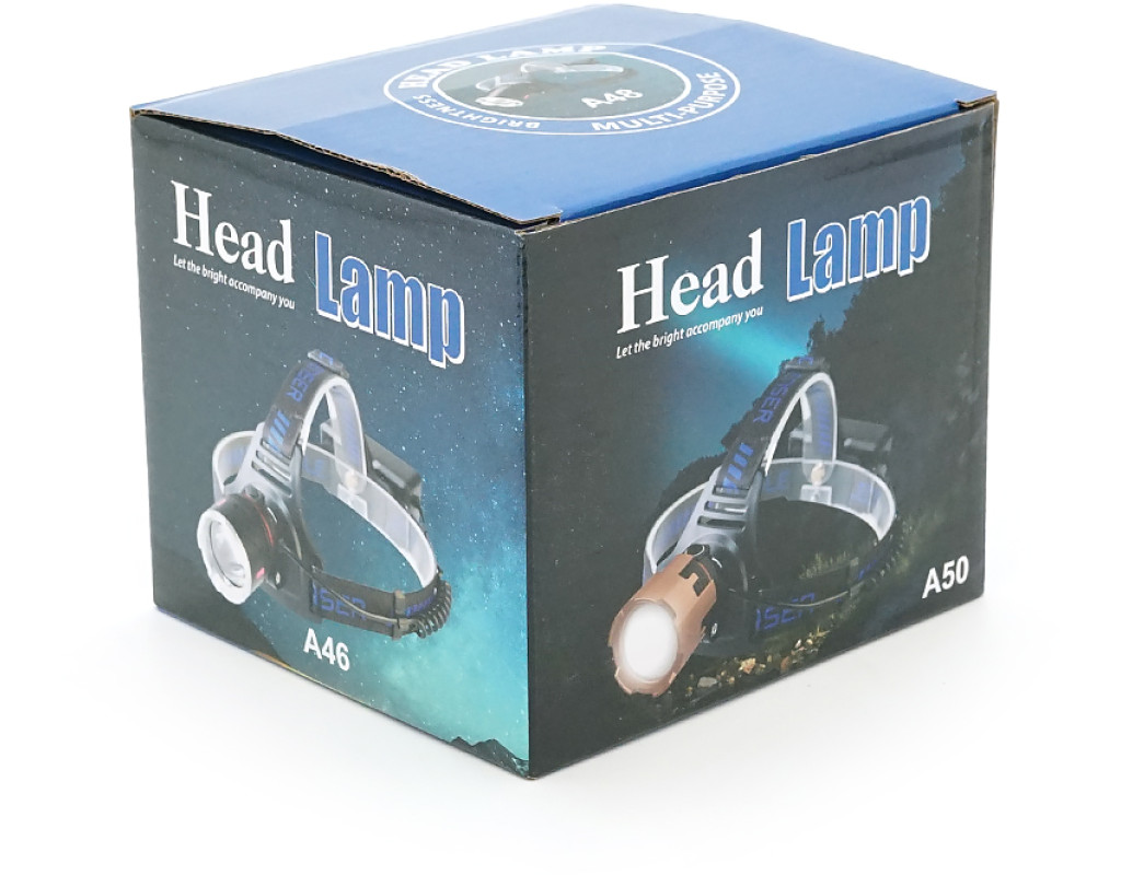 Налобний Ліхтарик Bailong BL-A50, 3 реж., Zoom, корпус-алюміній, водостійкий, ударостійкий, живлення від 3*18650, кабель USB, BOX