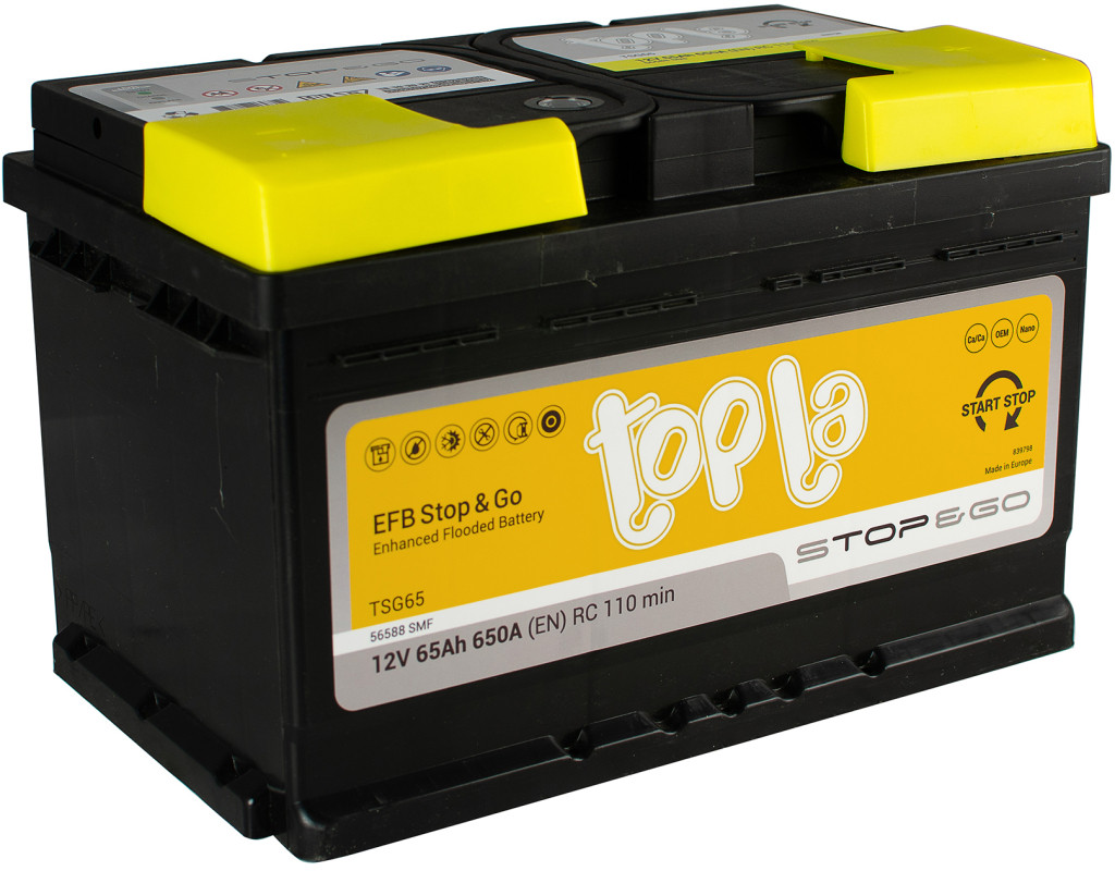 | Акумулятор автомобільний Topla 65 Ah/12V Topla EFB Euro (112 065) - ідеальне рішення для сучасних легкових автомобілів. Цей акумулятор розроблений з урахуванням останніх технологічних інновацій, що робить його відмінним вибором для власників транспортних засобів, обладнаних системою СТАРТ-СТОП. Основною перевагою даної моделі є технологія EFB (посилені залиті батареї), спеціально створена для мікрогібридних автомобілів. Це гарантує безперебійне енергопостачання, що критично важливо для сучасних авто. Topla EFB Stop&Go забезпечує швидке приймання заряду, особливо під час фаз їзди, завдяки унікальному розширювачу з вуглецем, що підвищує ефективність зарядки, збільшуючи термін служби акумулятора. Цей акумулятор вирізняється високим пусковим струмом в 650 А, що забезпечує легкий запуск двигуна навіть у холодну пору року. Завдяки кальцієвій (Ca/Ca) технології виготовлення, акумулятор має підвищену корозійну стійкість і не потребує обслуговування, що робить його зручним у користуванні. Конструкція з герметичною кришкою, а також пристрій захисту від вибуху, надійно запобігають потраплянню полум'я у батарею, забезпечуючи додаткову безпеку. Розміри акумулятора - 278 мм у довжину, 175 мм у висоту та ширину, що відповідає європейському стандарту. Стандартний конусний тип клеми (Euro) і зворотна полярність (- / +) роблять його універсальним для більшості легкових автомобілів. Для зручності транспортування та встановлення передбачена ручка для перенесення. Особливу увагу варто звернути на використання волокон MFW на позитивних пластинах, що запобігають осипанню активної маси, продовжуючи термін експлуатації акумулятора. Використання просічно-розтяжної технології дозволяє досягти найкращого захисту від корозії. Для швидкої перевірки стану батареї передбачено індикатор рівня "Magic eye" - “вічко”, який дозволяє власнику авто легко і швидко контролювати стан заряду акумулятора. Це робить модель Topla EFB Euro не просто функціональною, але й зручною у використанні. Завдяки своєму надійному виконанню та інноваційним технологіям, акумулятор автомобільний Topla 65 Ah/12V Topla EFB Euro є оптимальним вибором для вимогливих автомобілістів, які цінують якість, надійність та безпечність. Інвестиція в цей акумулятор забезпечить ваш автомобіль стабільним енергопостачанням на довгі роки, роблячи кожну поїздку комфортною та безтурботною. |