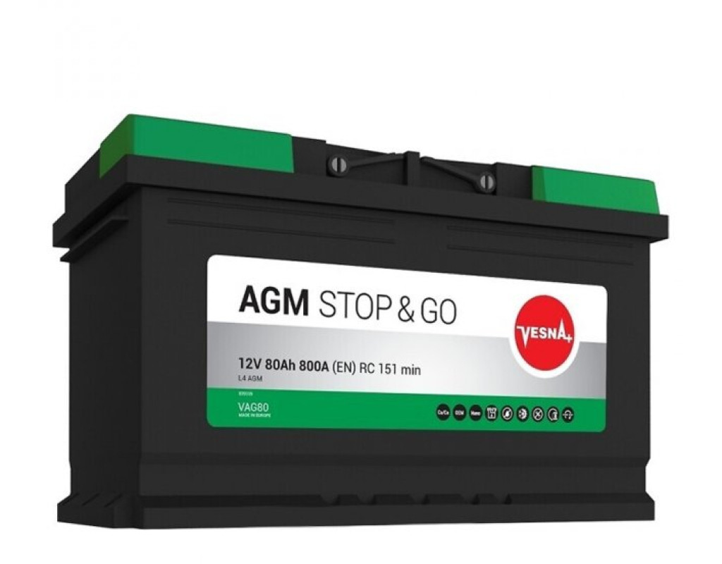 Акумулятор автомобільний Vesna 80 Ah/12V Vesna AGM Euro (314 085)