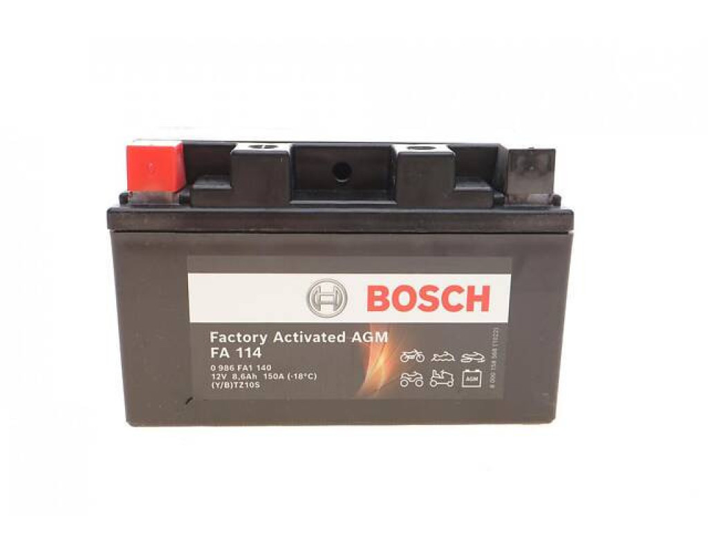 | Акумулятор автомобільний Bosch 0 986 FA1 140 Мото акумулятор Bosch 6СТ-8.6 Аз 0 986 FA1 140 — це висока якість та надійність у кожній деталі. Створений відомим брендом Bosch, цей акумулятор забезпечує надійне та тривале живлення для різноманітного мототранспорту, включаючи мотоцикли, водні мотоцикли, мопеди, скутери та снігоходи. Ця модель ідеально підходить для експлуатації в складних умовах завдяки своїм специфічним характеристикам, які роблять її відмінним вибором для ентузіастів мототехніки, що прагнуть отримати максимум від свого транспорту. Основні переваги акумулятора Bosch 0 986 FA1 140 полягають у його надійній конструкції та використанні передових технологій. Тип електроліту AGM (Absorbent Glass Mat) дозволяє акумулятору не потребувати обслуговування, що робить його зручним у використанні для тих, хто віддає перевагу практичності. Завдяки технології AGM забезпечується довгий термін служби батареї, чудова стійкість до вібрацій та висока ефективність у важких умовах. З об'ємом батареї 8.6 Агод і стандартною напругою 12 В, цей акумулятор надає надійне та стабільне джерело енергії для вашого транспорту. Високий пусковий струм у 150 А забезпечує впевнений запуск двигуна навіть за низьких температур, що є надзвичайно важливим для мотоциклів та інших мототранспортних засобів у зимовий період. Розміри акумулятора (довжина 150 мм, висота 93 мм, ширина 88 мм) роблять його легко встановлюваним у більшість моделей мототехніки. Незважаючи на компактність, акумулятор залишається надзвичайно потужним. Вид затиску ланцюга A забезпечує міцне та надійне з'єднання, а виконання днищевої планки B0 гарантує стабільність під час інтенсивних вібрацій, що часто трапляються під час їзди по нерівним дорогам. Особливо зручно те, що акумулятор оснащений квадратними (мото) клемами європейського типу і полярністю + / - (пряма) СНД, що робить його універсальним вибором для різних видів мототранспорту. Bosch 6СТ-8.6 Аз 0 986 FA1 140 — це акумулятор для тих, хто не готовий миритися з компромісами. Він забезпечує неперевершену якість, надійність та зручність, дозволяючи вам зосередитися на дорозі, а не на стані батареї. Купуючи цей акумулятор, ви забезпечуєте своєму мототранспорту не тільки енергію, але й спокійний розум в будь-яких умовах. |